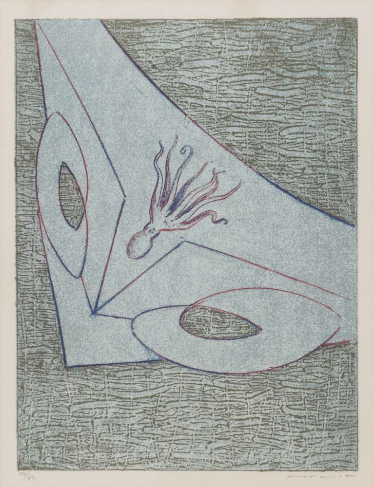 MAX ERNST (Brühl 1891- Parigi 1976) Senza titolo Serigrafia a colori, ex. 24/79 Misure della lastra, cm. 33,5 x 25,5 Firma in basso a destra