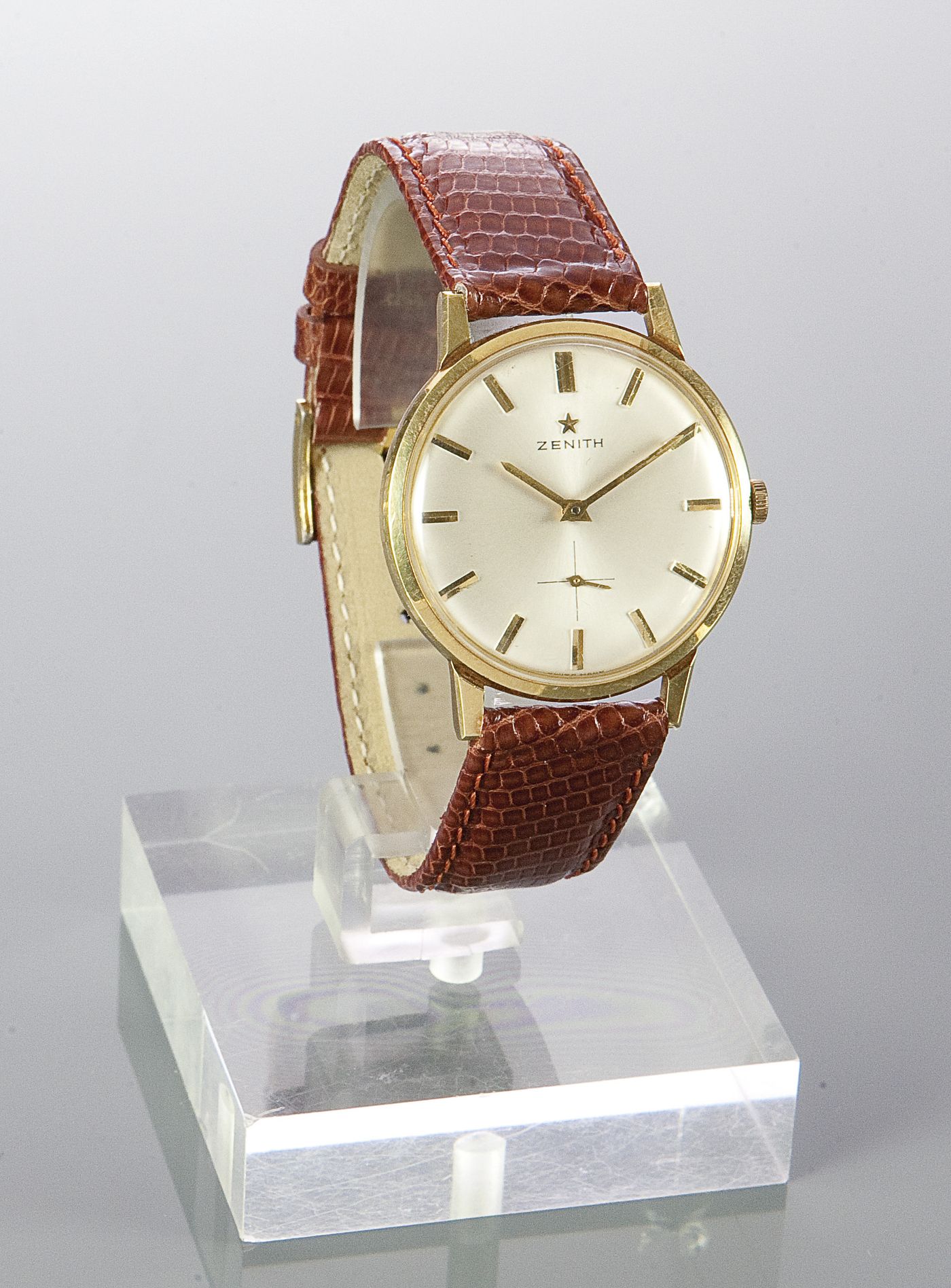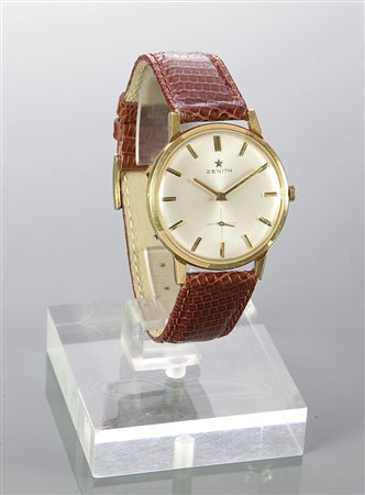 ZENITH Solo tempo, anni '60 Diam.34 Cassa in oro giallo in due corpi con anse dritte; quadrante con indici applicati Movimento a carica manuale calibro 2541.