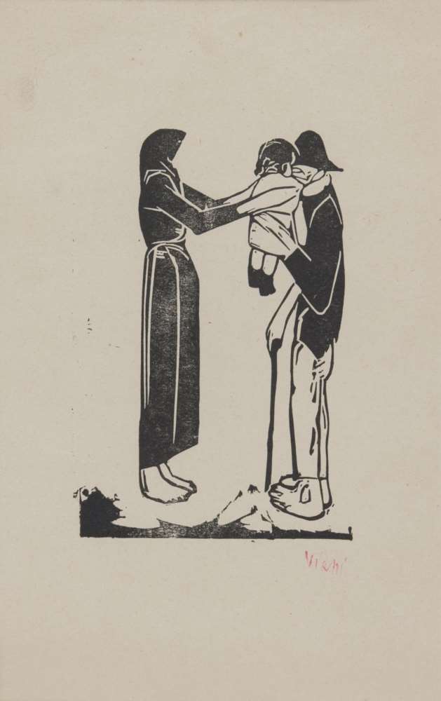 LORENZO VIANI (Viareggio 1882 - Lido di Ostia 1936) Famiglia di contadini Xilografia, ex. nd. Misure della lastra, cm. 17 x 10,5 Firma in basso a destra