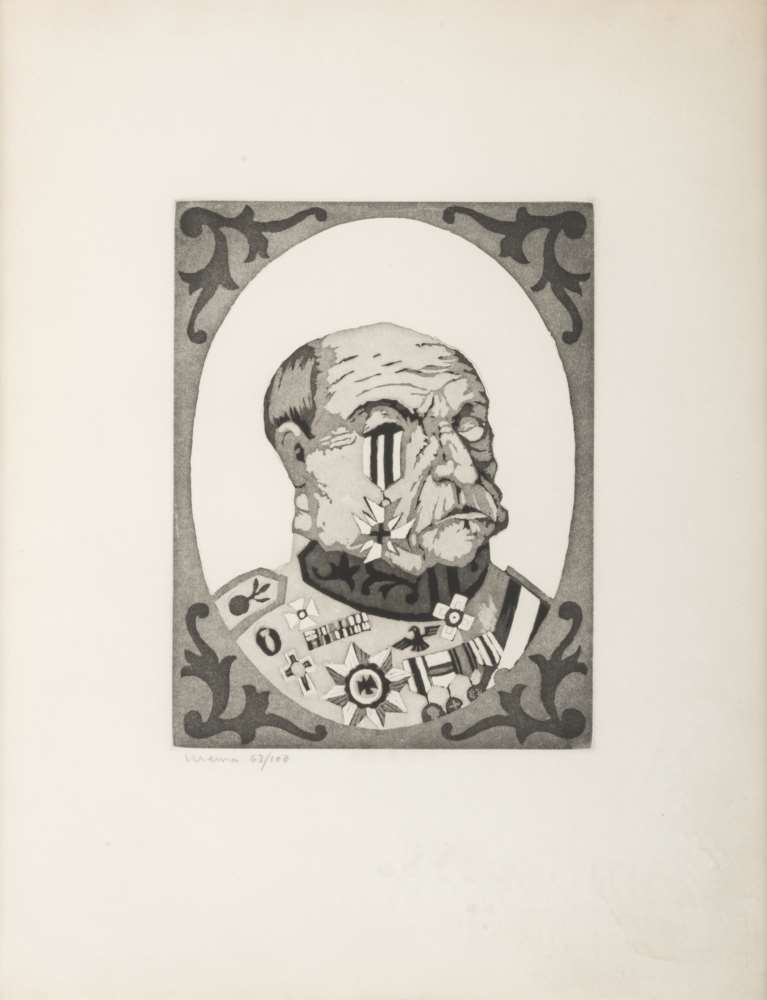 INCISORE EUROPEO, XX SECOLO Generale Litografia, ex. 63/100 Misure della lastra, cm. 26 x 20 Misure del foglio, cm. 50 x 40 Firma in basso a sinistra