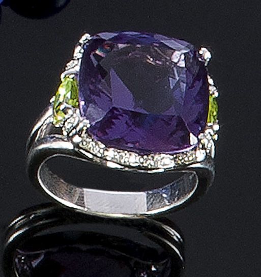 Lot 520 | ANELLO Anello in oro bianco con grande ametista sfaccetatta Peso gr 16,1...