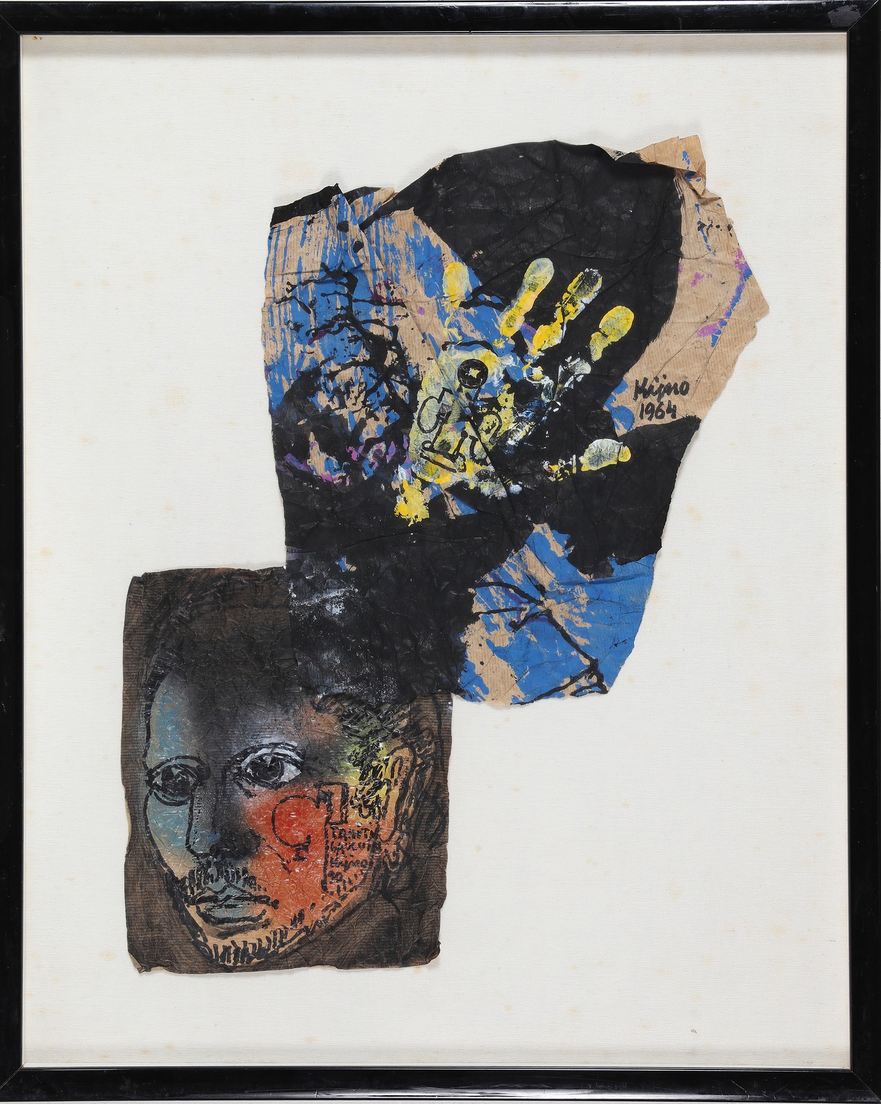 KIJNO LADISLAS (1921 - 2012) The hand (1964) and Paul Gauguin (back from Tahiti, 1990). Acrilic on papier froisse. Cm 44,00 x 60,00. Arte Vinciguerra, Bellona, label at the back. Artist's authenticity certificate on photo.