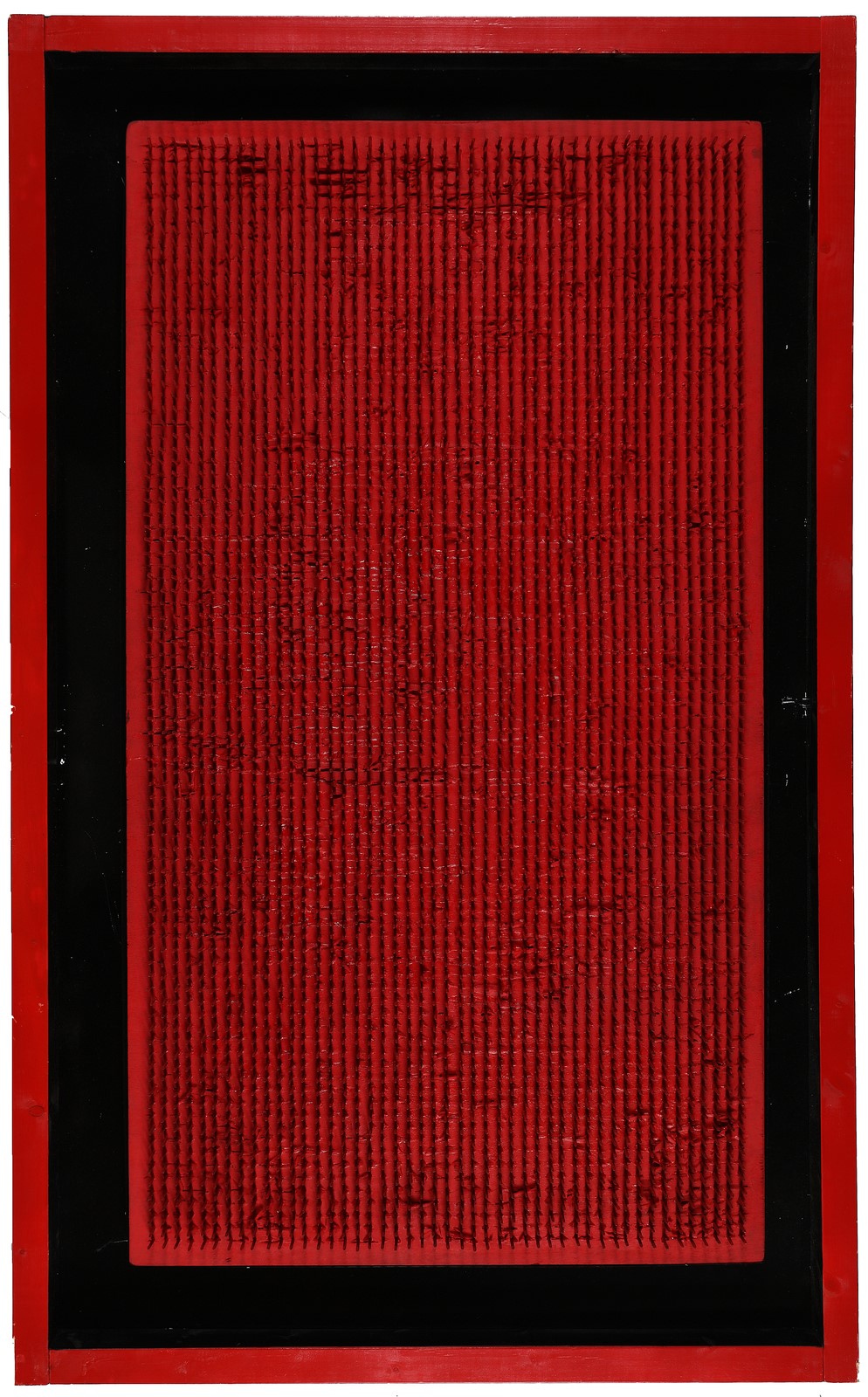 AUBERTIN BERNARD (1934 - 2015) Tableau Clous. . 1970. Chiodi su tavola. Cm 90,00 x 50,00. Al retro firma e anno. Opera archiviata presso l'Archivio Opere Bernard Aubertin, Brescia, come documentazione fotografica allegata all'opera riportante il relativo numero d'inventario.