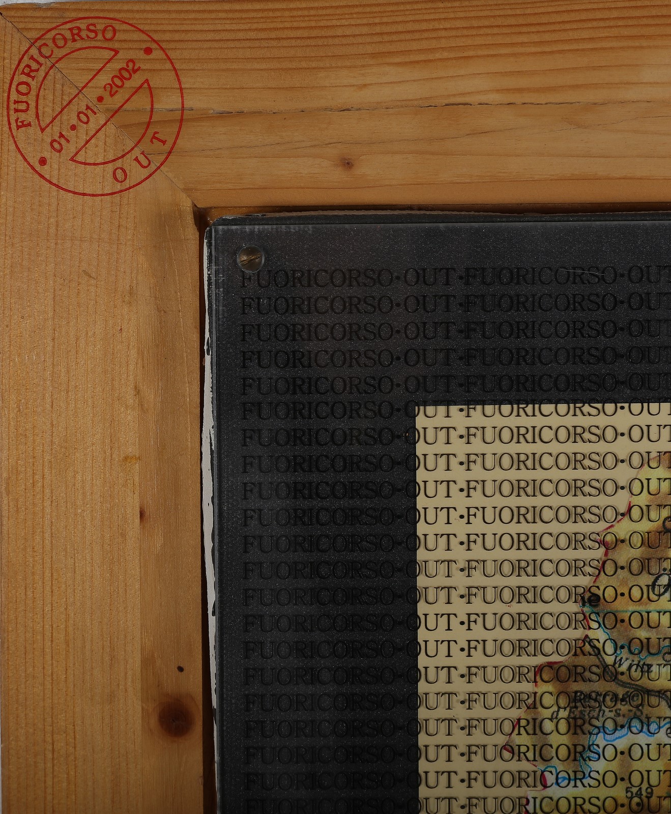 ROTELLA MIMMO (1918 - 2006) Fuoricorso 2001 (Lussemburgo). Polimaterica su tela. Cm 40,00 x 30,00. Al retro titolo, firma e anno. Dalla serie omonima composta da 12 pezzi unici. Edizione completa: 8 + 2 p.a. Cornice presente