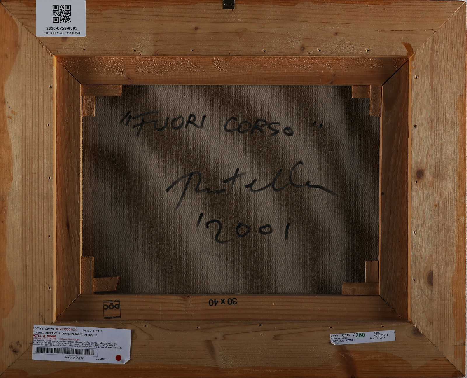 ROTELLA MIMMO (1918 - 2006) Fuoricorso 2001 (Luxembourg). Mixer media on canvas. Cm 40,00 x 30,00. Title signature and year at the back. From the homonym series of 12 pieces. Complete edition: 8 + 2 p.a. Cornice presente