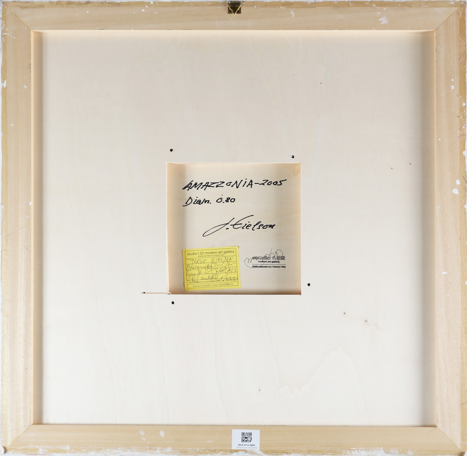 EIELSON JORGE (1924 - 2006) Amazzonia. . 2005. Tecnica mista su tela. Cm 80,00 x 80,00. Al retro titolo, firma, anno e timbro e cartiglio descrittivo a cura dello Studio F22, Palazzolo, Brescia. Autentica su fotografia a cura dello Studio F22. . Cornice presente