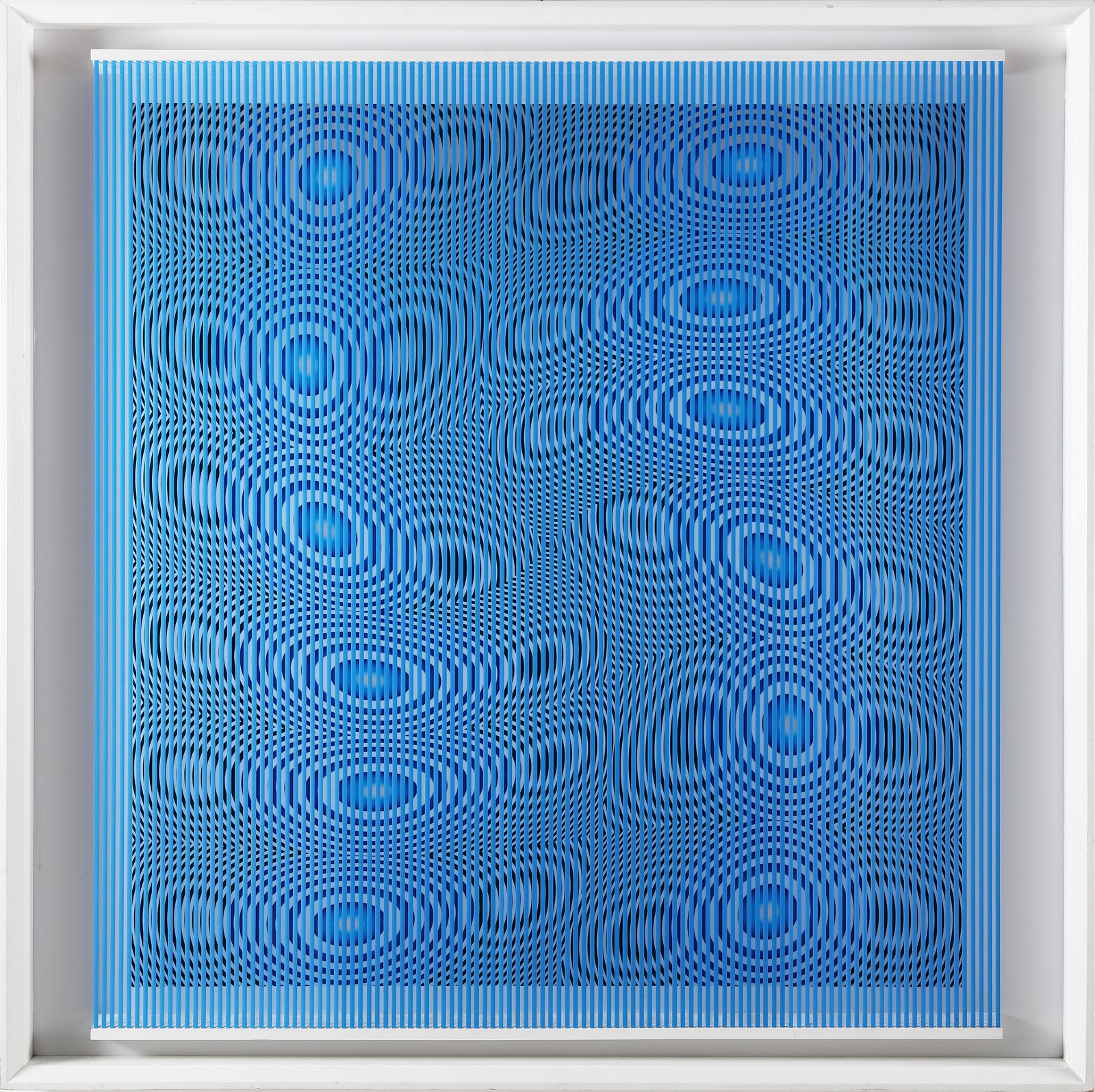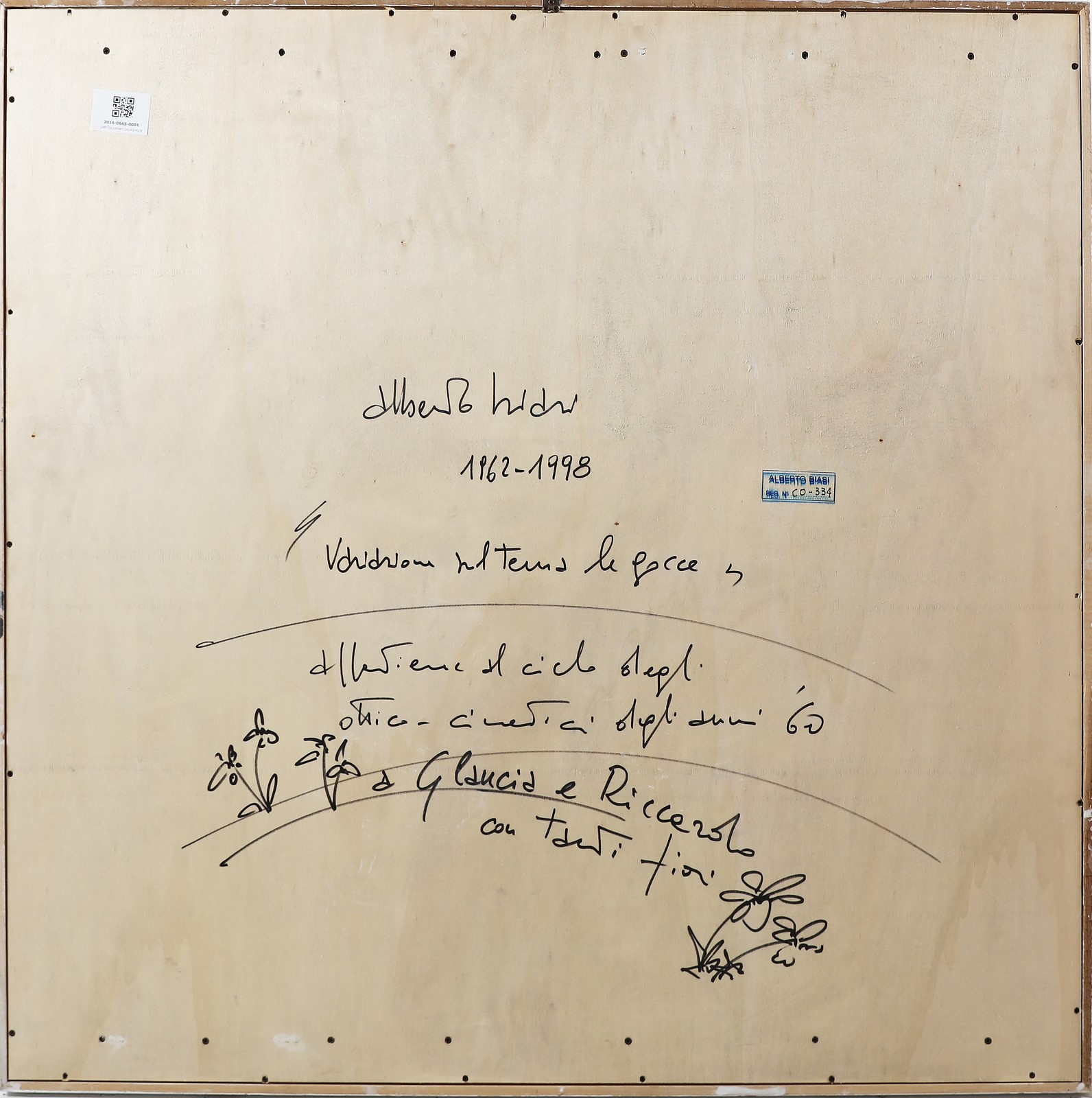 BIASI ALBERTO (n. 1937) Variation on drops theme. Mixed nomes on board. Cm 100,00 x 100,00. 1962-1988. Signature, year, title and dedication at the back. Artist's authenticity certificate on photo. Orler Gallery, Abano Terme, certificate on photo.. Cornice presente