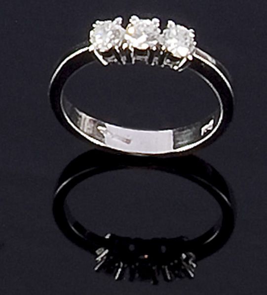 DAMIANI Anello in oro bianco, modelo trilogy, firmato "Damiani", con tre diamanti taglio brillante rotondo di ct 0,55 ca Peso gr 3,5 Misura 13