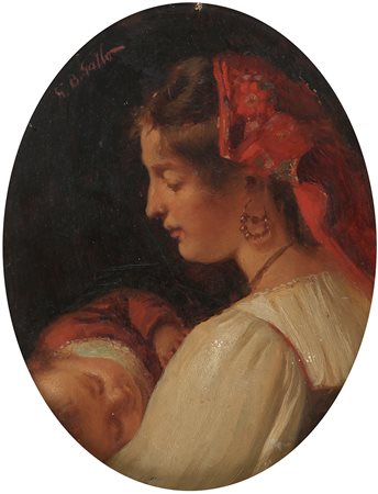 Giovan Battista Gallo (1846-1924) Donna con bambino Olio su cartoncino cm...