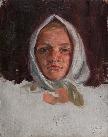 Giuseppe De Nittis (Barletta 1846-Francia 1884) Ritratto di bambina Olio su tela cm 23x18 firmato in basso a dx (Expertise della Prof. Christine Farese Sperken) Vecchio cartellino di appartenenza Galleria Lino Pesaro Milano