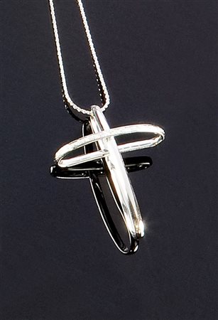CIONDOLO CON CATENA Ciondolo in oro bianco e a forma di croce con piccoli...