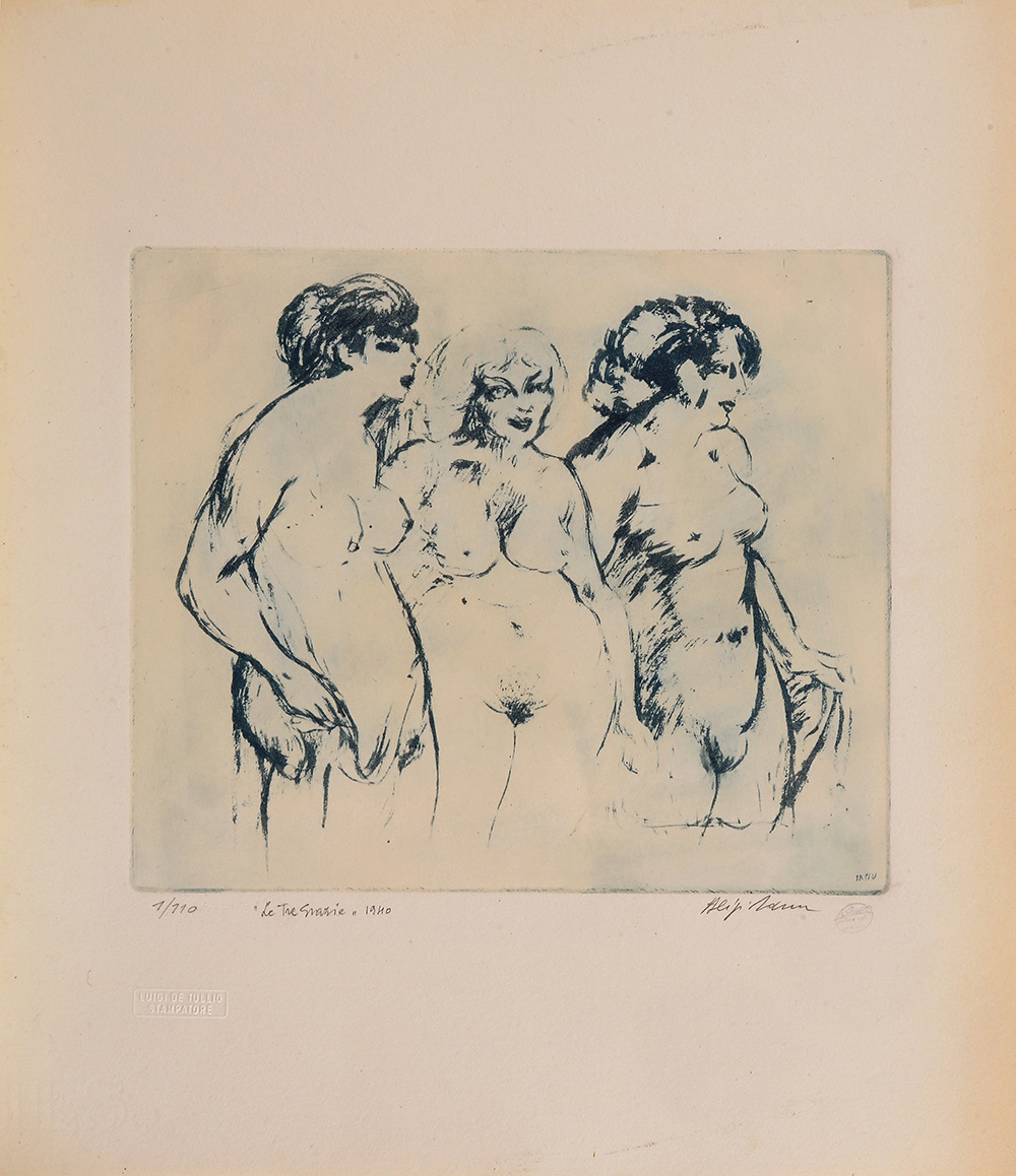 ALIGI SASSU Milano 1912 – Pollença 2000 " Le tre Grazie " 1940 acquaforte acquatinta es. n. 1/110 50x35 firmato in lastra e a matita in basso a destra