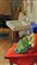 NINO BERTOLETTI Roma 1889 – Roma 1971 " Interno " 1960 olio su tela 47x28 firmato e datato a retro + timbro Galleria M. Arte, Via del Babbuino Roma