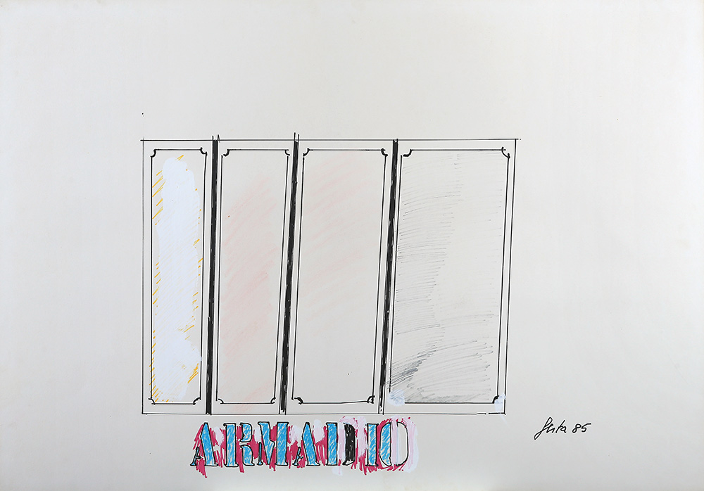 TANO FESTA Roma 1938 - Roma 1988 " Armadio " 1985 pennarelli su carta 70x100...