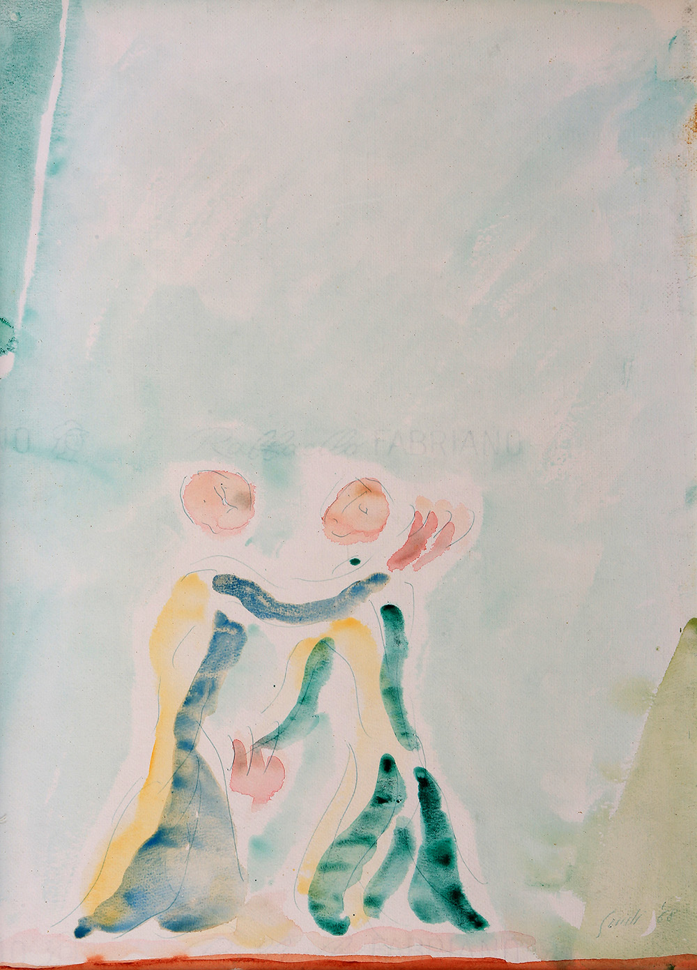 VIRGILIO GUIDI Roma 1891 - Venezia 1984 " L' incontro " 1968 acquerello su tela 35x50 firmato e datato in basso a destra; Autentica rilasciata dalla Galleria Bonelli