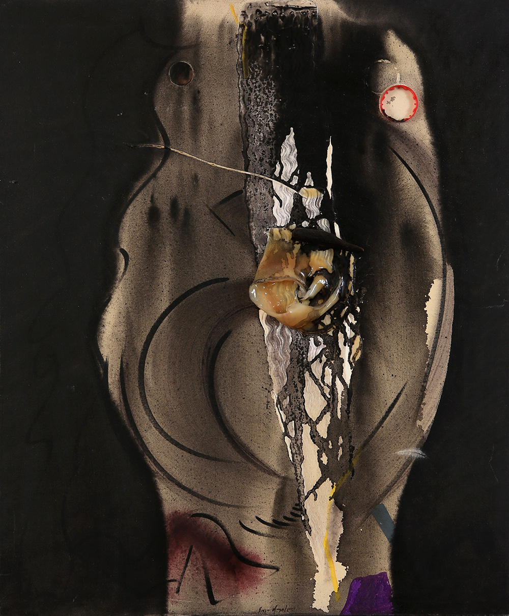 SERGIO DANGELO Milano 1932 "Voce di serpente " anni '90 olio e collage su tela 60x50 firmato in basso al centro; firmato e titolato al retro Autentica Galleria Pace