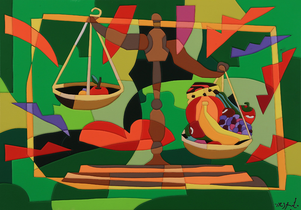UGO NESPOLO Mosso 1941 " Equilibrio vegetale " Intarsio su legno 50 x 70 firmato in basso a destra; firmato e titolato al retro. Pubblicato sul Catalogo Galleria d' Arte Federico II di Bari per l' occasione della Mostra Ugo Nespolo