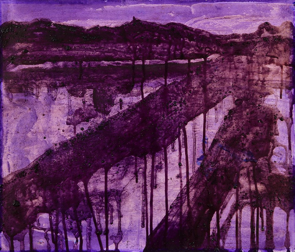 GIOVANNI FRANGI Milano 1959 " Valle rosso " 2010 tecnica mista su cartoncino 59 x 50 firmato in basso al centro; firmato, datato e titolato al retro. Autentica del Maestro su foto