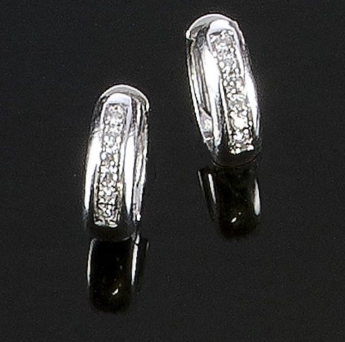 VISCONTI Coppia di orecchini in oro bianco, a cerchio, firmati "Visconti" con diamantini taglio brillante rotondo per complessivi ct 0,25 ca Peso gr 6,3