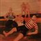 CARLO ROSELLI Milano 1939 " Personaggi all' aperto " olio su tela 40x50 firma in basso a destra; firmato e titolato al retro Autentica dell' Autore su fotografia