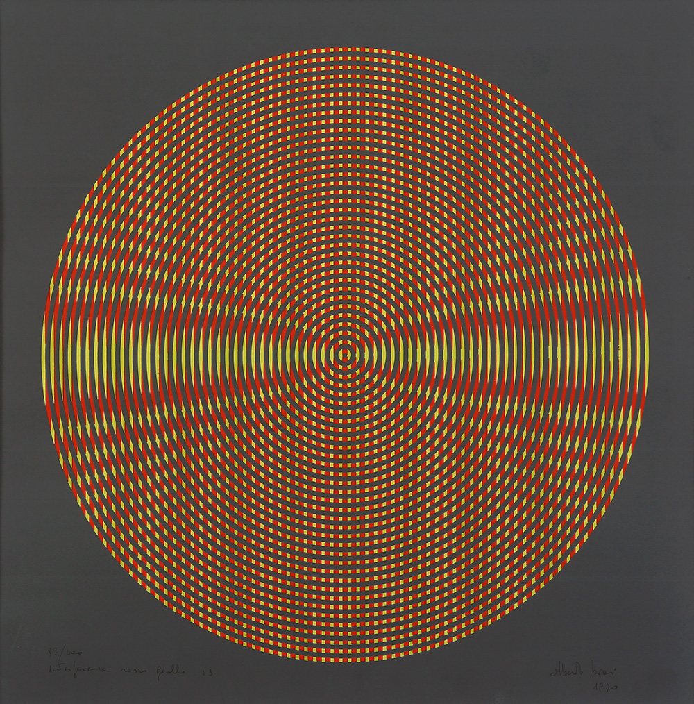 ALBERTO BIASI Padova 1937 " Interfaccia rosso giallo " 1970 serigrafia a colori es. n. 99/100 48x48 firmato e datato in basso a destra; numerato e titolato " interfaccia rosso giallo " in basso a sinistra Editore Tipografia Antoniana Padova