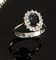 ANELLO Anello in oro bianco con al centro zaffiro di taglio ovale e contorno di sedici diamanti taglio brillante 8/8 per complessivi ct 0,50 ca Peso gr 3,8 Misura12