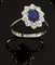PALMERIO Anello in oro bianco, firmato "Palmerio", con zaffiro centrale di taglio ovale, circondato da dieci diamanti taglio brillante rotondo per complessivi ct 1,00 ca Peso gr 3,2 Misura 19