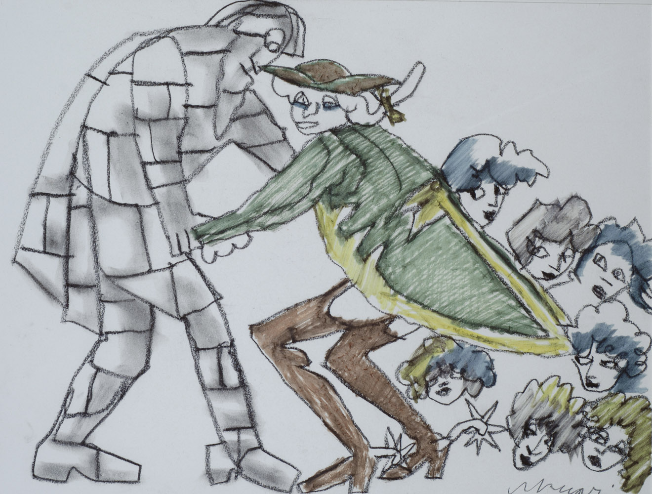 Mino Maccari, Siena 1898 - Roma 1989, Senza titolo, Pastelli e carboncino su carta, cm. 36x47, Firma in basso a destra.