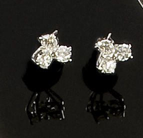 MUSY Coppia di orecchini in oro bianco, a lobo, firmati "Musy", con sei diamantini taglio brillante rotondo disposti a gruppi di tre per complessivi ct 0,60 ca Peso gr 2,00