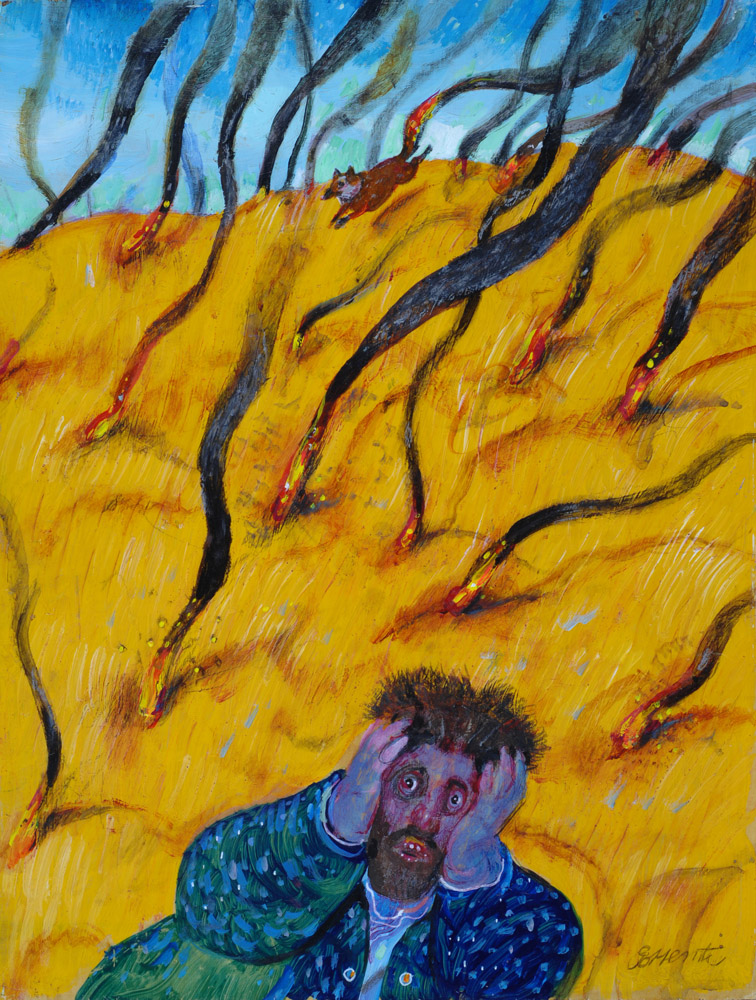 Antonio Possenti, Lucca 1933 - 2016, Animali di Esopo - L'uomo e la Volpe, Olio su tavola, cm. 39,8x29,8, Firma in basso a destra. Sul verso: titolo e firma.