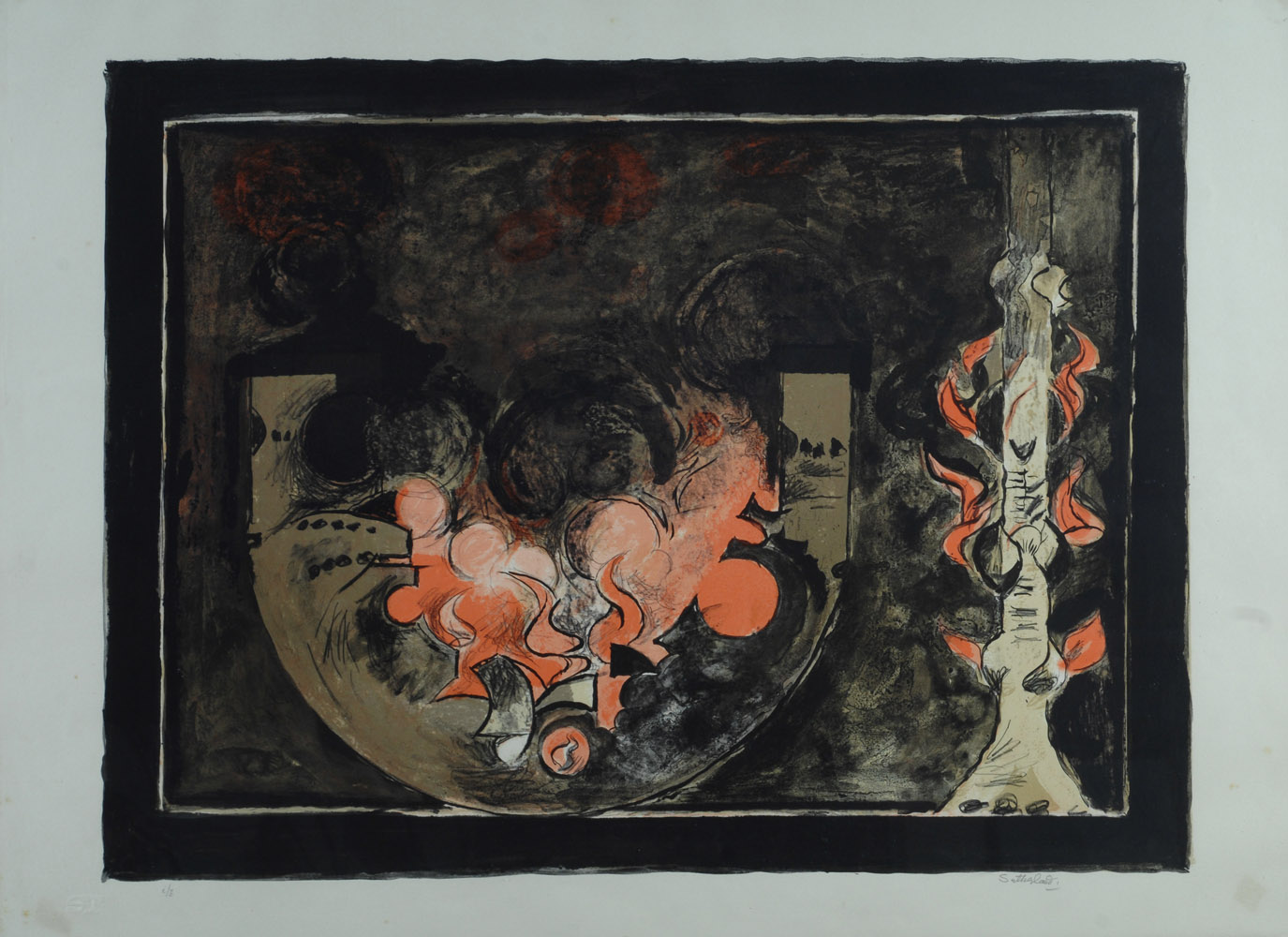 Graham Sutherland, Londra 1903 - Mentone 1980, Forms, 1974, Litografia a colori, mm.560x755; es. I/Z da una tiratura di 75 esemplari + a/z - z/z, Firma in basso a destra, tiratura in basso a sinistra. Timbro a secco dell'editore in basso a sinistra. Provenienza: Teodoani Editore, Milano. Bibliografia: 1991-1992, Incisioni originali italiane e straniere dell'800 e moderne, acquerelli e disegni, Catalogo Prandi n° 204, Libreria Prandi, Reggio Emilia.