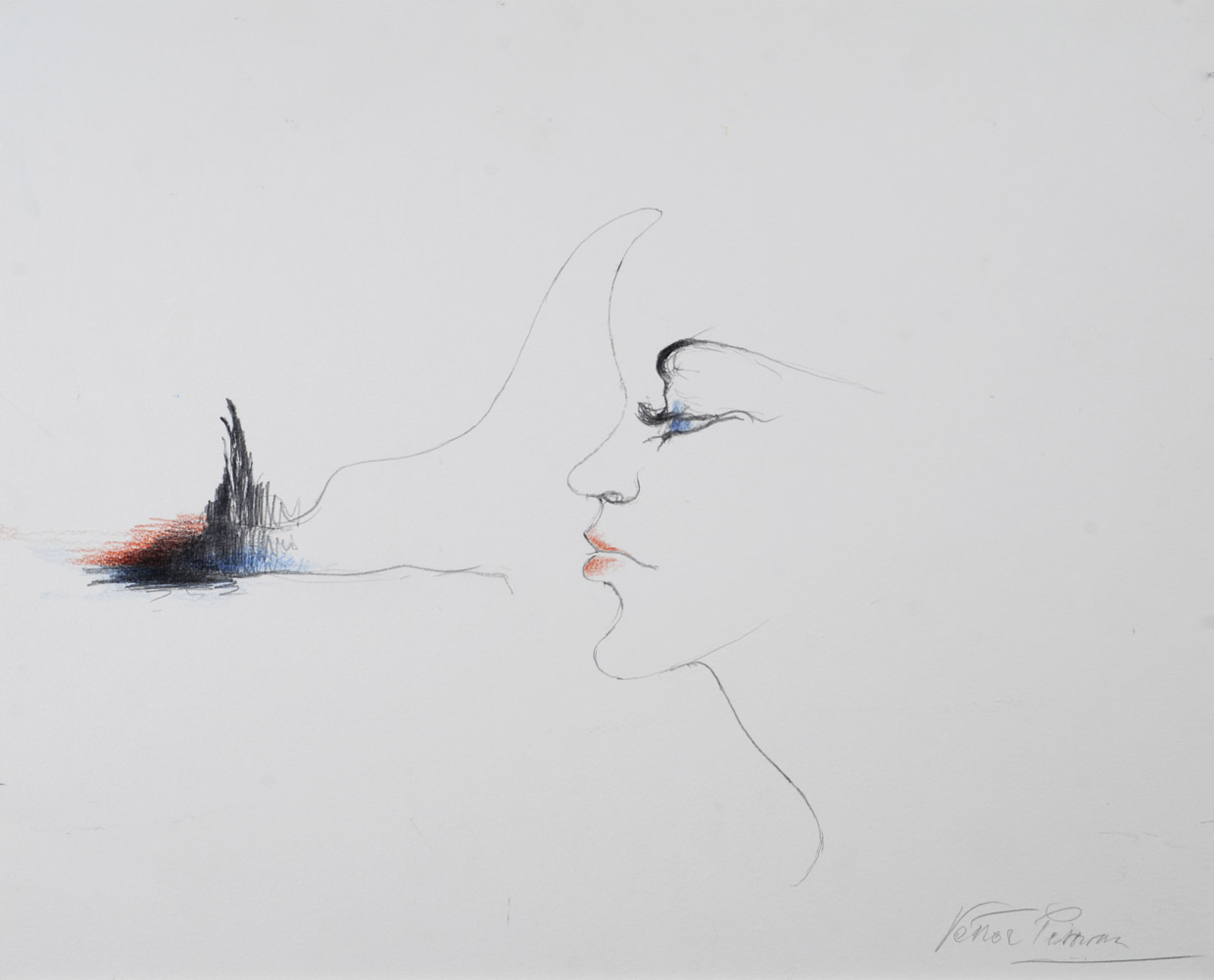 Vettor Pisani, Napoli 1934 - 0, Profilo, Matite su carta, cm. 40x50, Firma in...