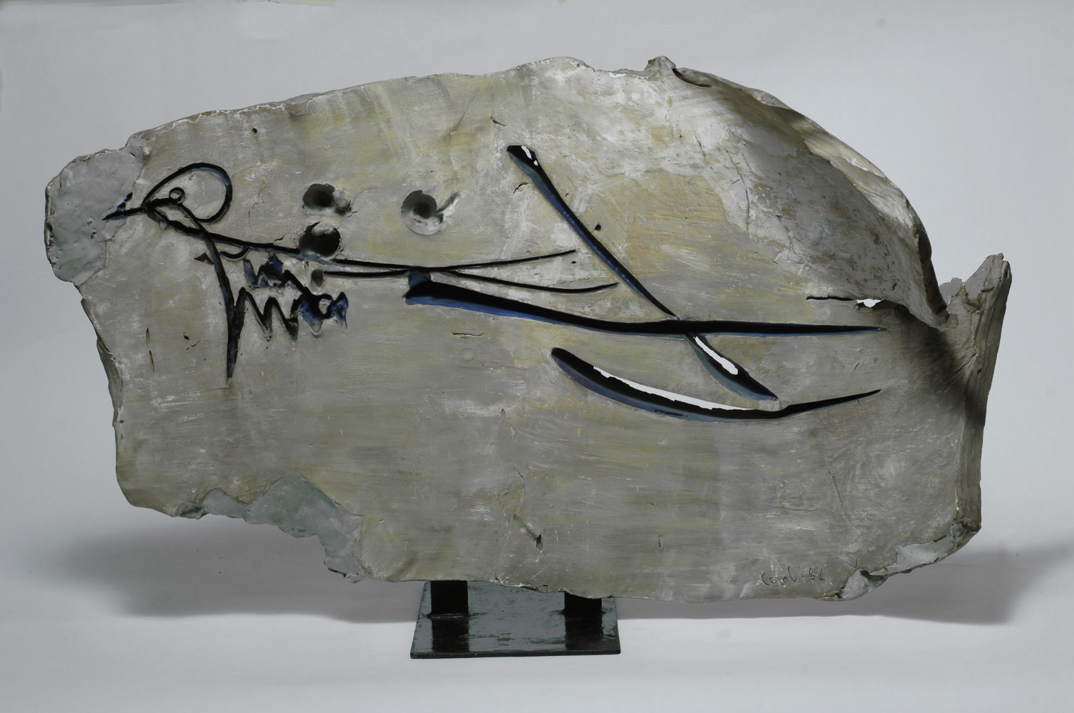 Mario Ceroli, Castelfrentano 1938 - 0, Senza titolo, 1962, Terracotta incisa e dipinta, cm. 59x103, Firma e data in basso a destra.