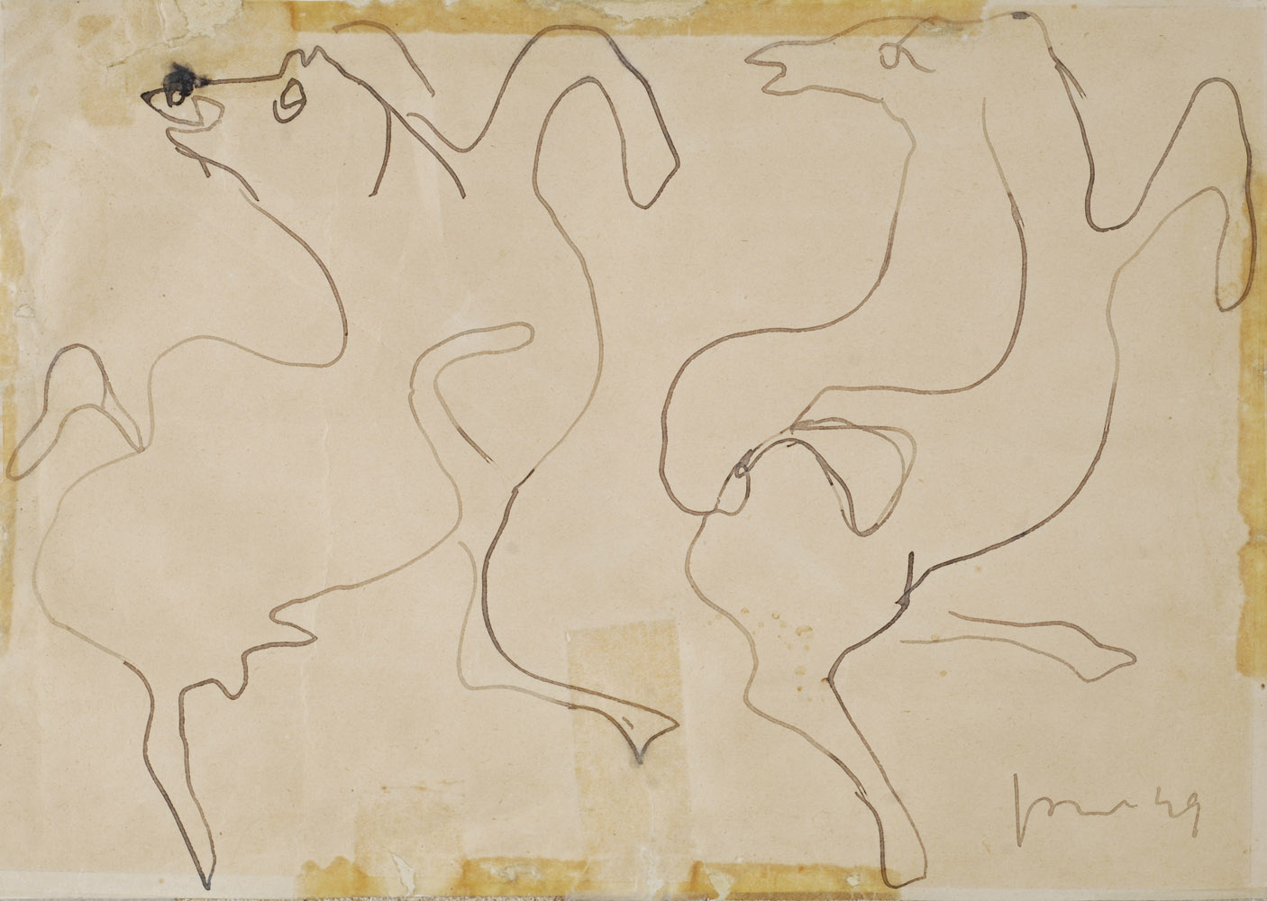 Lucio Fontana, Rosario di Santa Fè 1899 - Comabbio 1968, Due Cavalli, 1949, Inchiostro su carta, cm. 20x28,5, Firma e data in basso a destra. Opera Archiviata presso la Fondazione Lucio Fontana con il n. 2757/2
