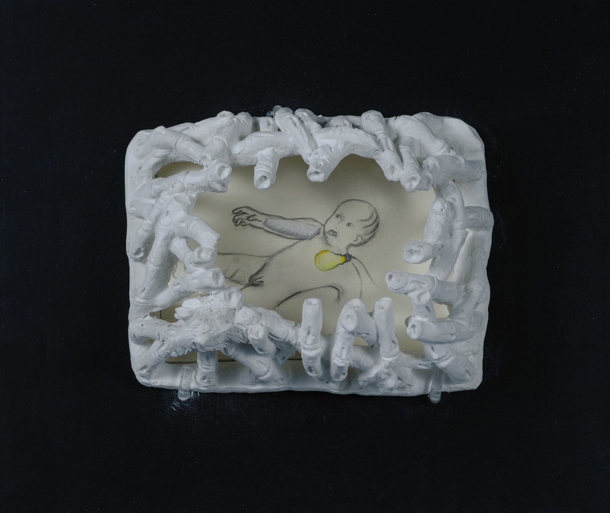 Enzo Cucchi, Morro d'Alba 1950 - 0, Lampo, 2004, Matita e pelo di animale su carta, gesso, cm. 15x20x8, Autentica dell'autore su foto con provenienza Rizziero Arte, Pescara.