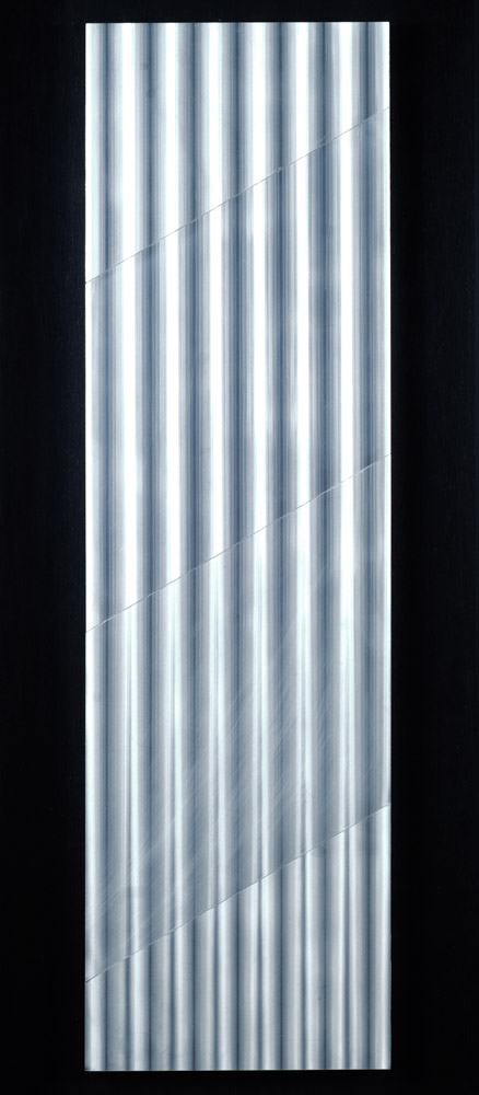 Getulio Alviani, Udine 1939 - 0, Superficie a testura vibratile, 1978, Alluminio spazzolato, cm. 72x21, Firma, data e titolo sul verso. Autentica dell'autore su foto.