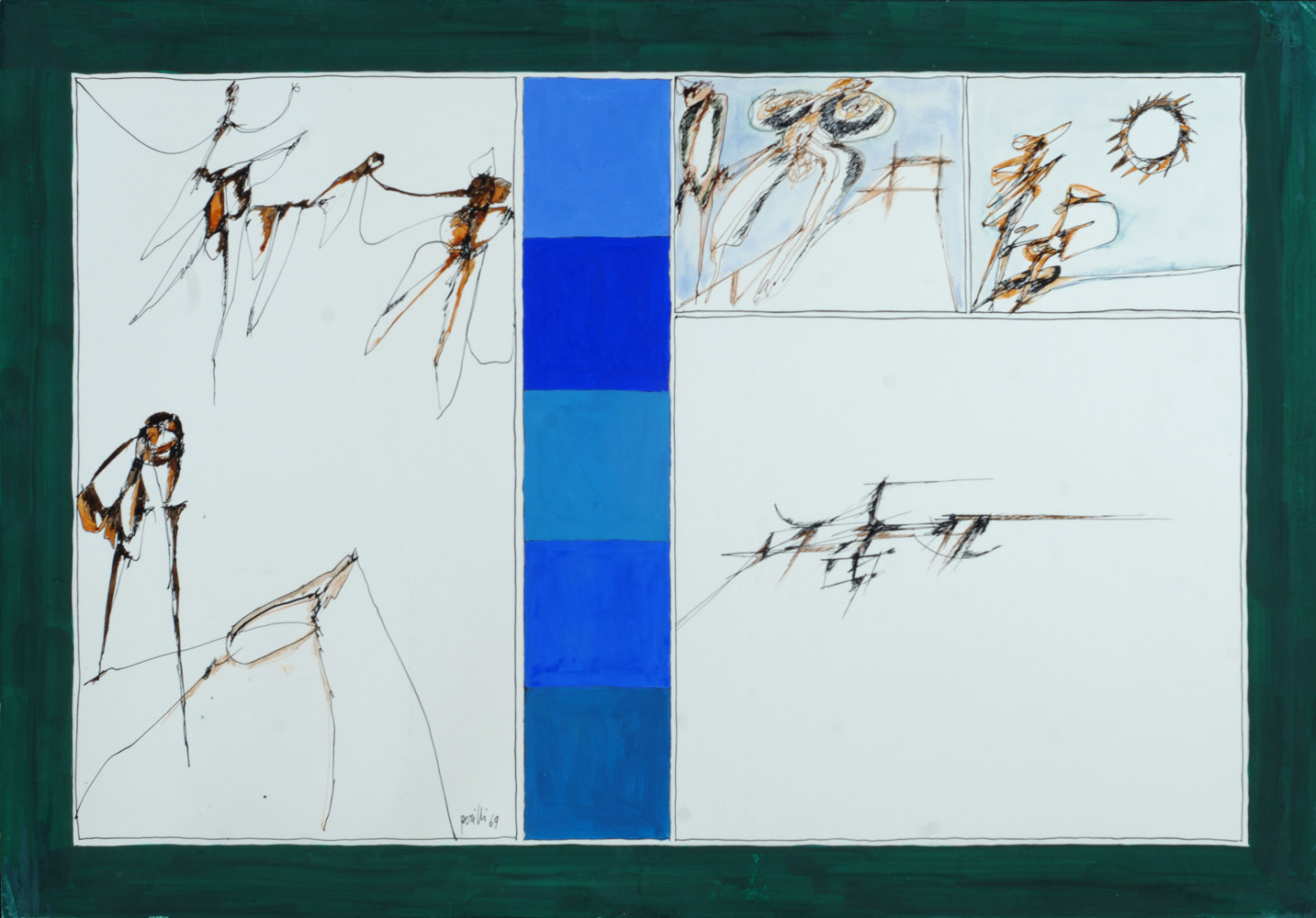 Achille Perilli, Roma 1927 - 0, Senza titolo, 1969, Tecnica mista su carta, cm. 50x73, Firma in basso a sinistra. Autentica Archivio Perilli.