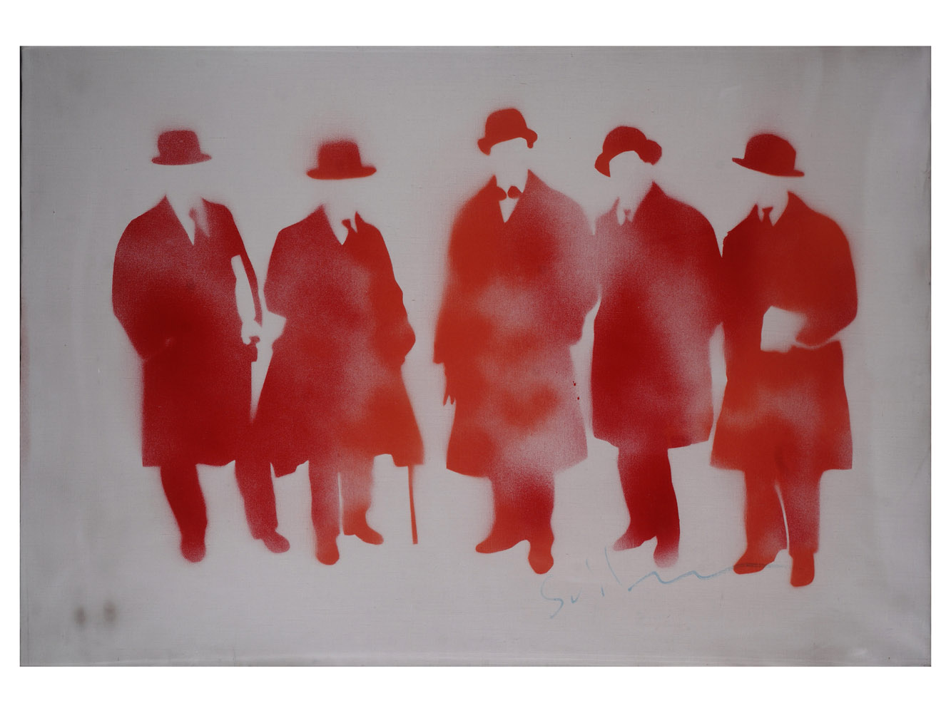 Mario Schifano, Homs 1934 - Roma 1998, Futuristi, Acrilico su tela, cm. 70x100, Fiirma in basso a destra. Opera in fase di archiviazione.