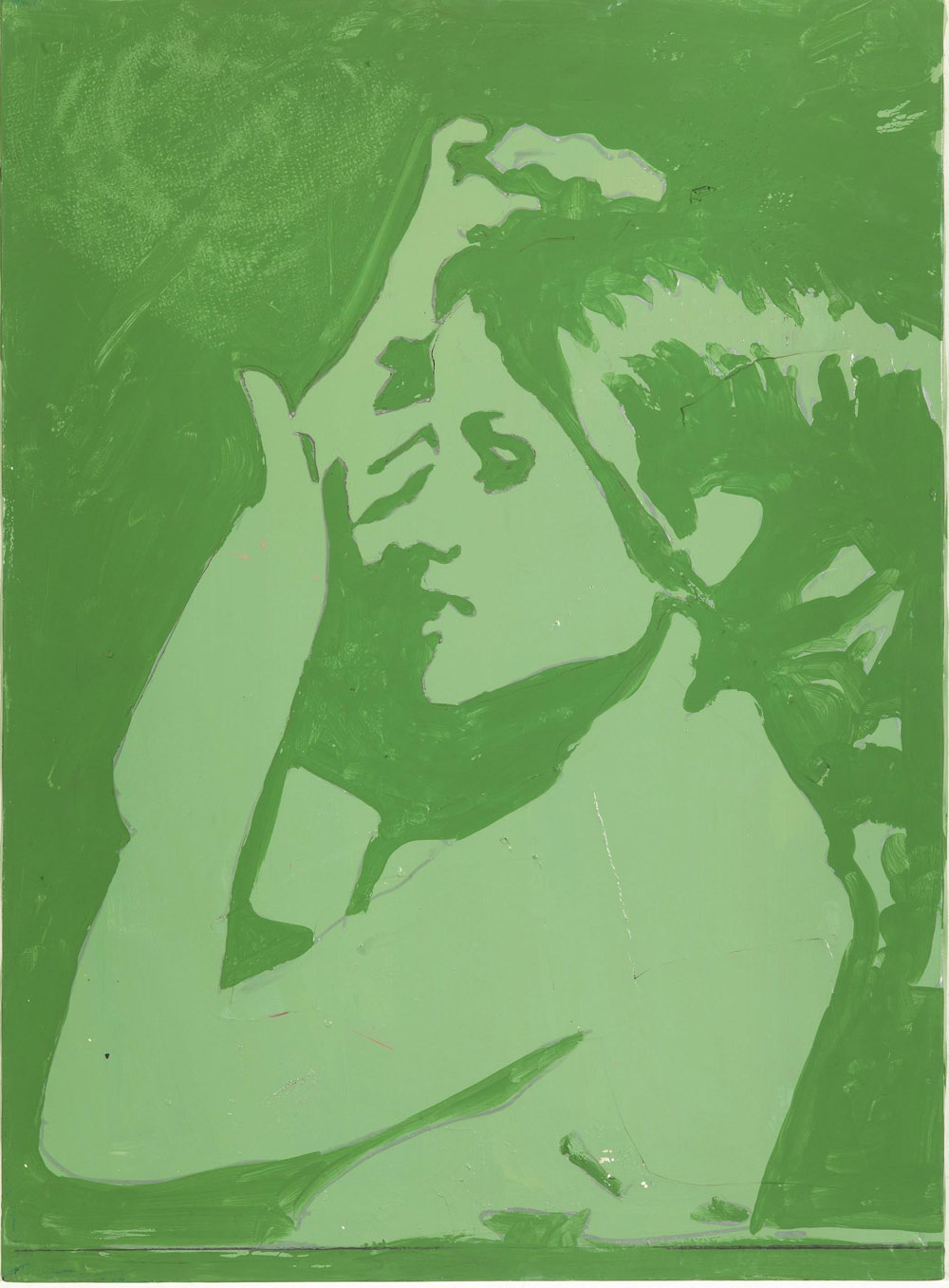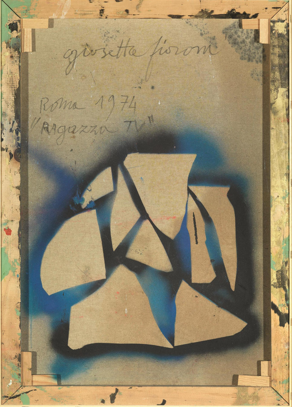 GIOSETTA FIORONI(Roma 1932)Ragazza TVsmalto e acrilico su tela, cm 70x50sul...