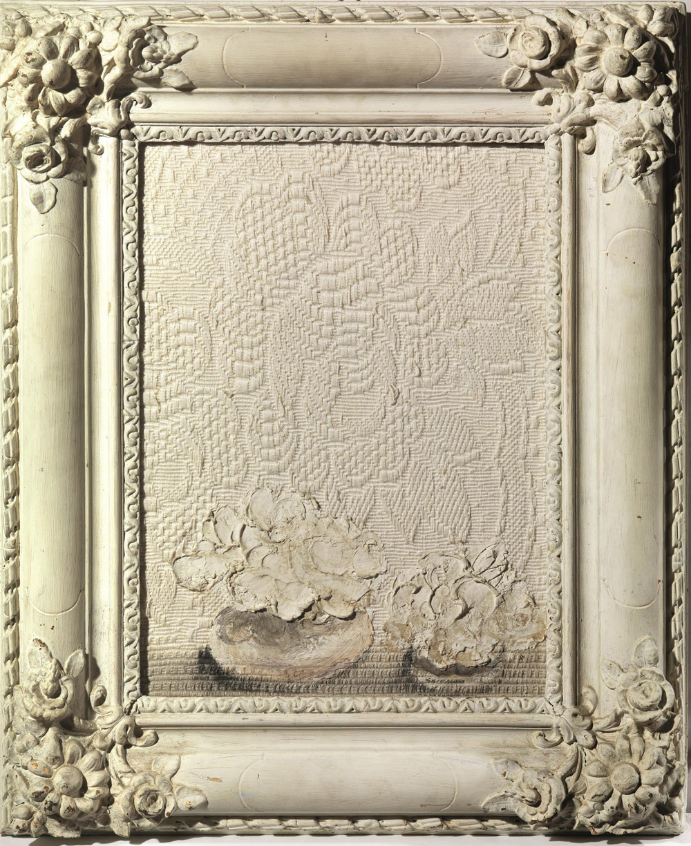 EZIO GRIBAUDO(Torino 1929)Natura mortaolio su tessuto applicato su tavola, cm...
