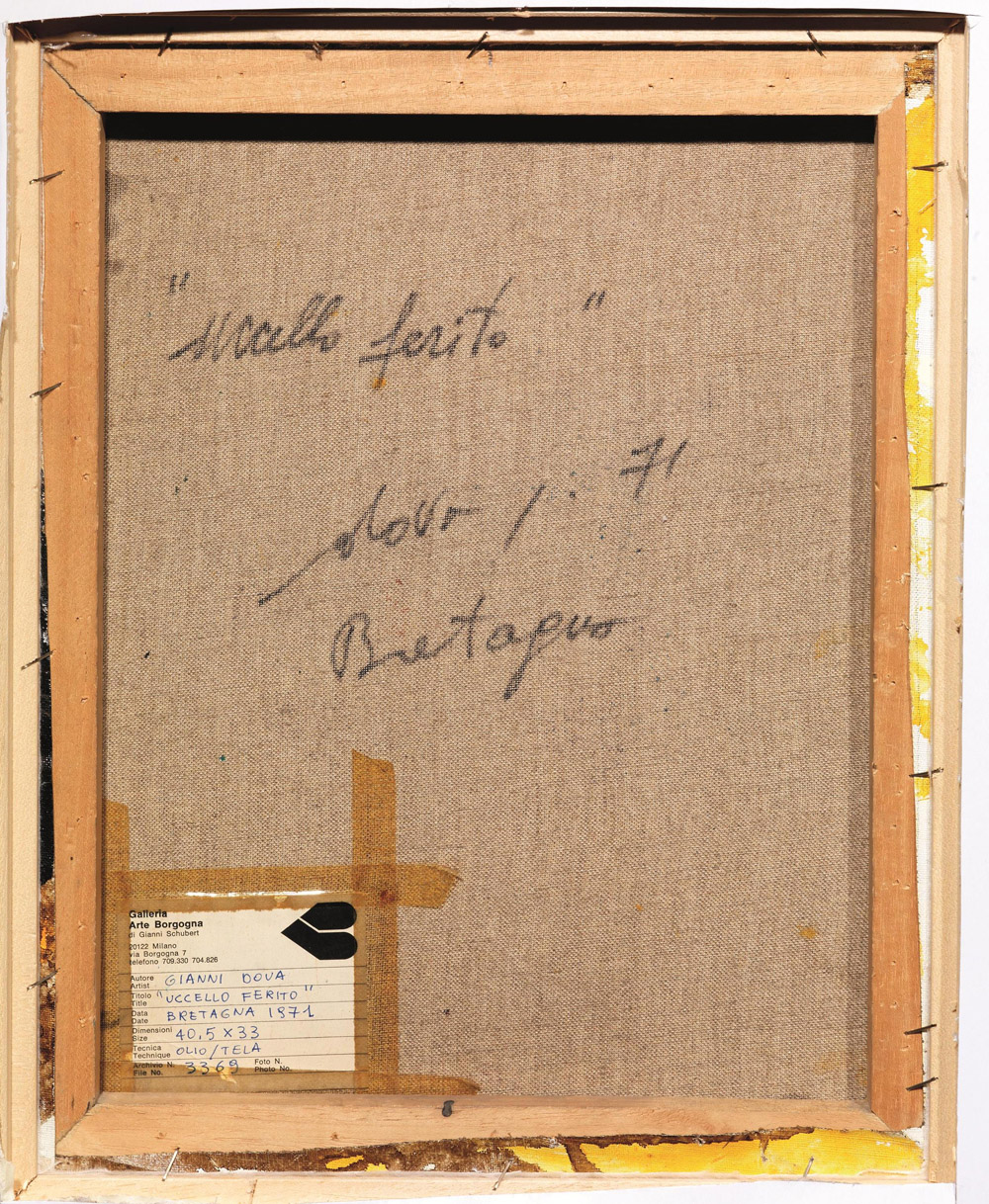 GIANNI DOVA(Roma 1925 - Pisa 1991)Uccello feritoolio su tela, cm 41x33sul...