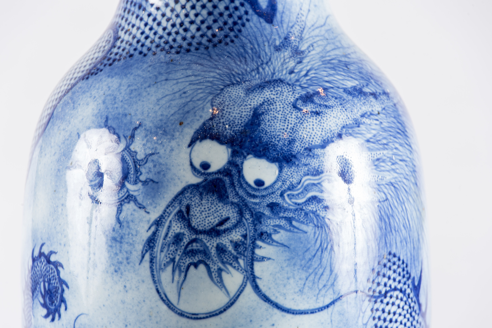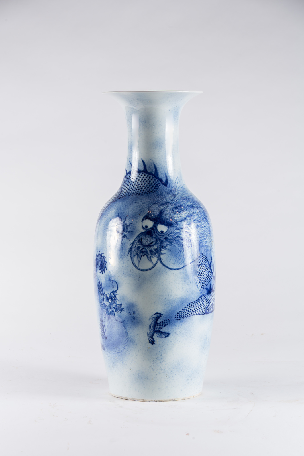 Arte Cinese Vaso in porcellana bianco/blu decorato con dragone alla ricerca...