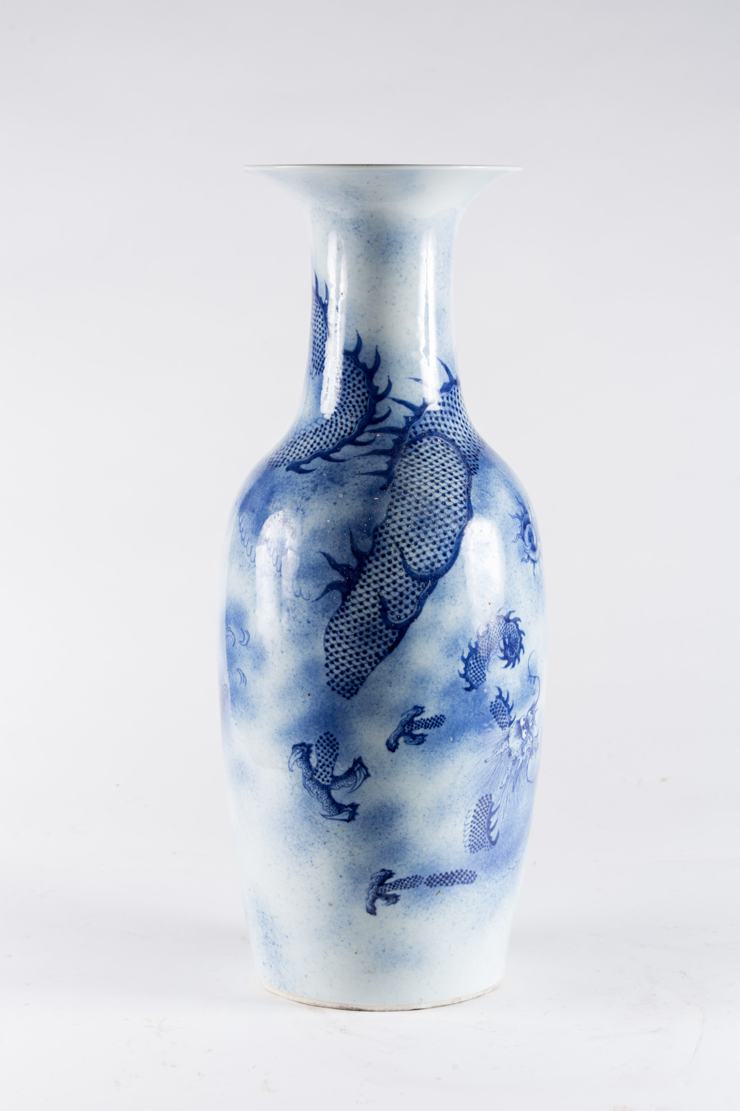 Arte Cinese A blue and white porcelain vase painted with dragon chasing the flaming pearl