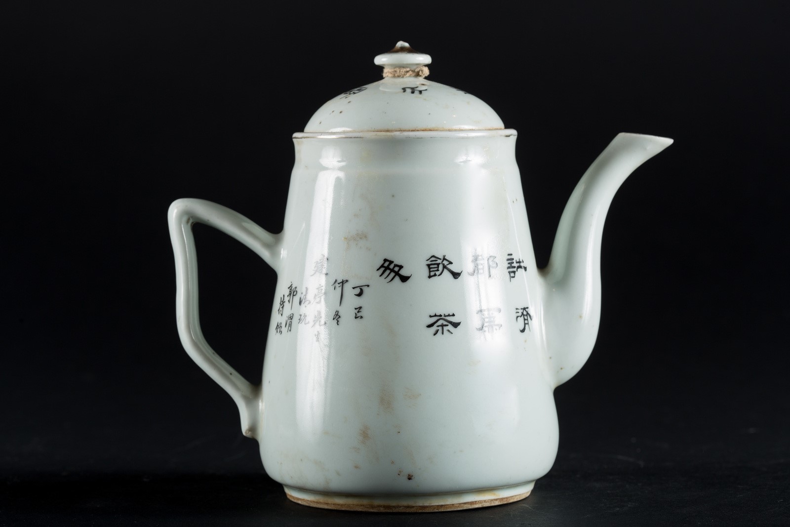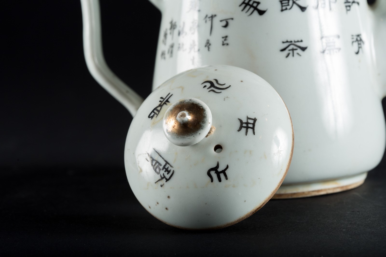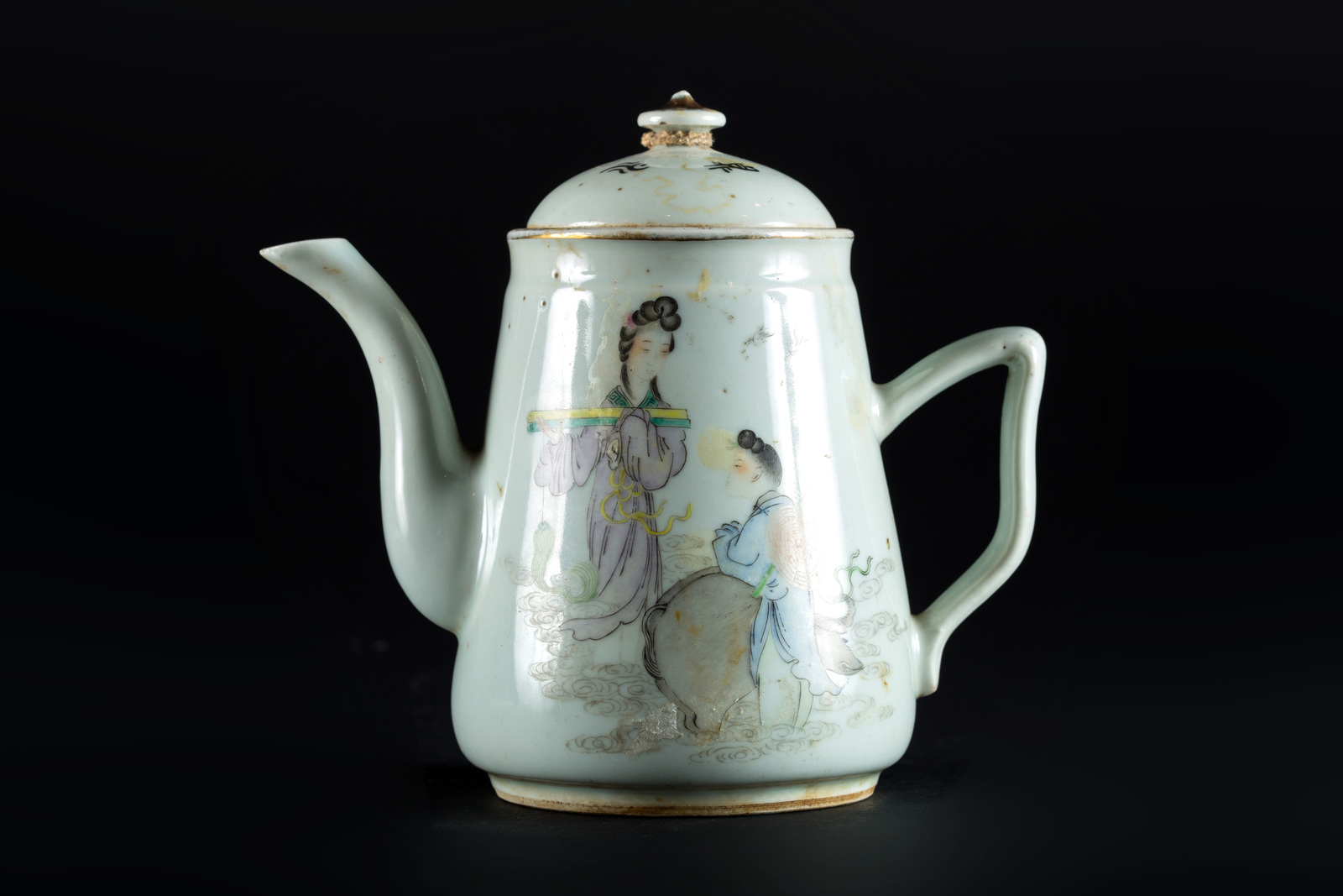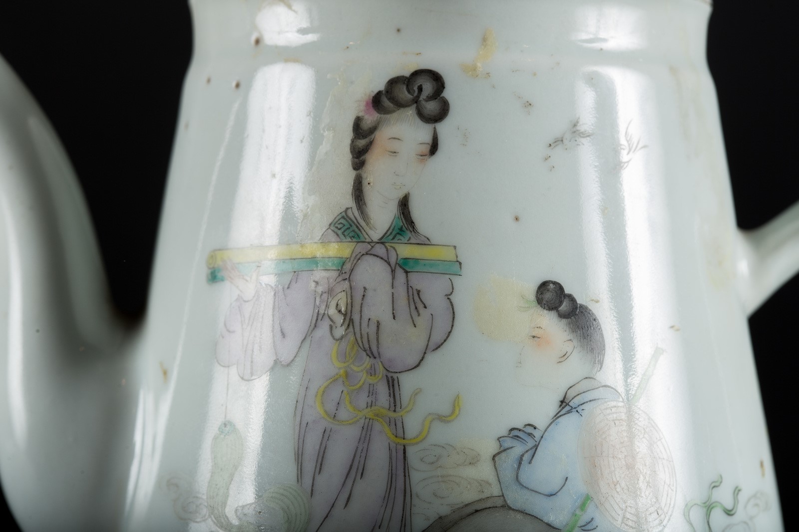 Arte Cinese Teiera in porcellana dipinta con dame in esterno ed iscrizioni