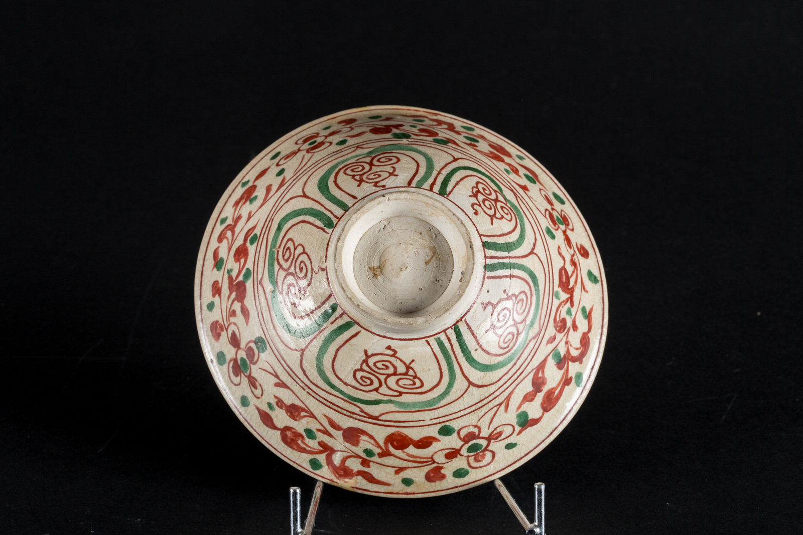 Arte Cinese A ceramic bowl painted with green and red flowers and leaves Vietnam, 15th century or later . . Cm 16,50 x 6,00.