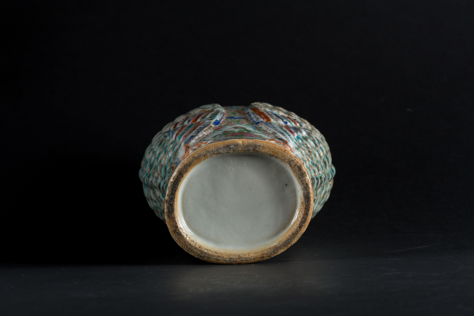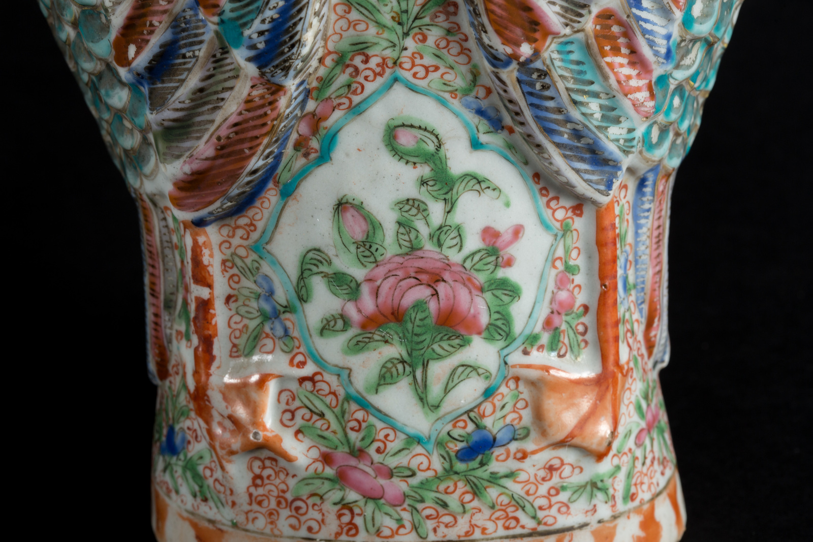 Arte Cinese Vaso in ceramica in stile Canton decorato con fenici in rilievo