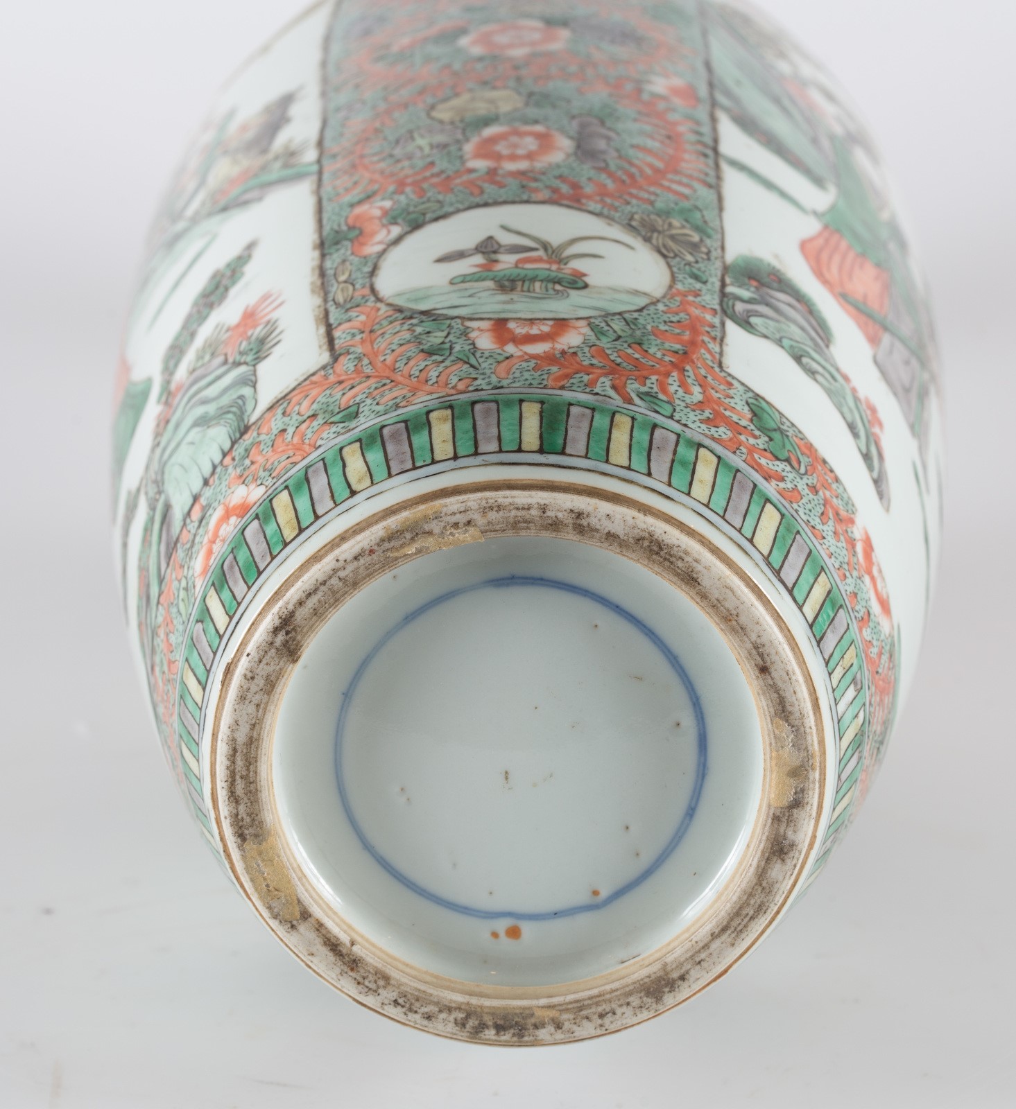 Arte Cinese A porcelain baluster vase painted with famille verte enamels