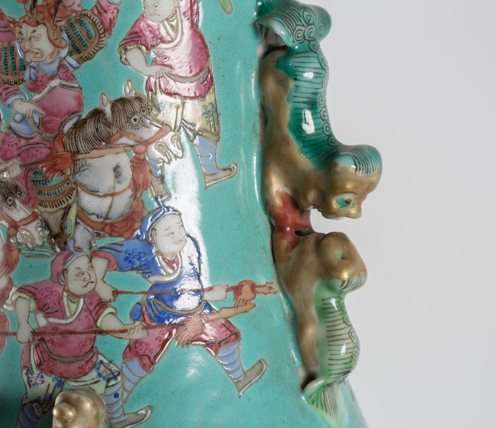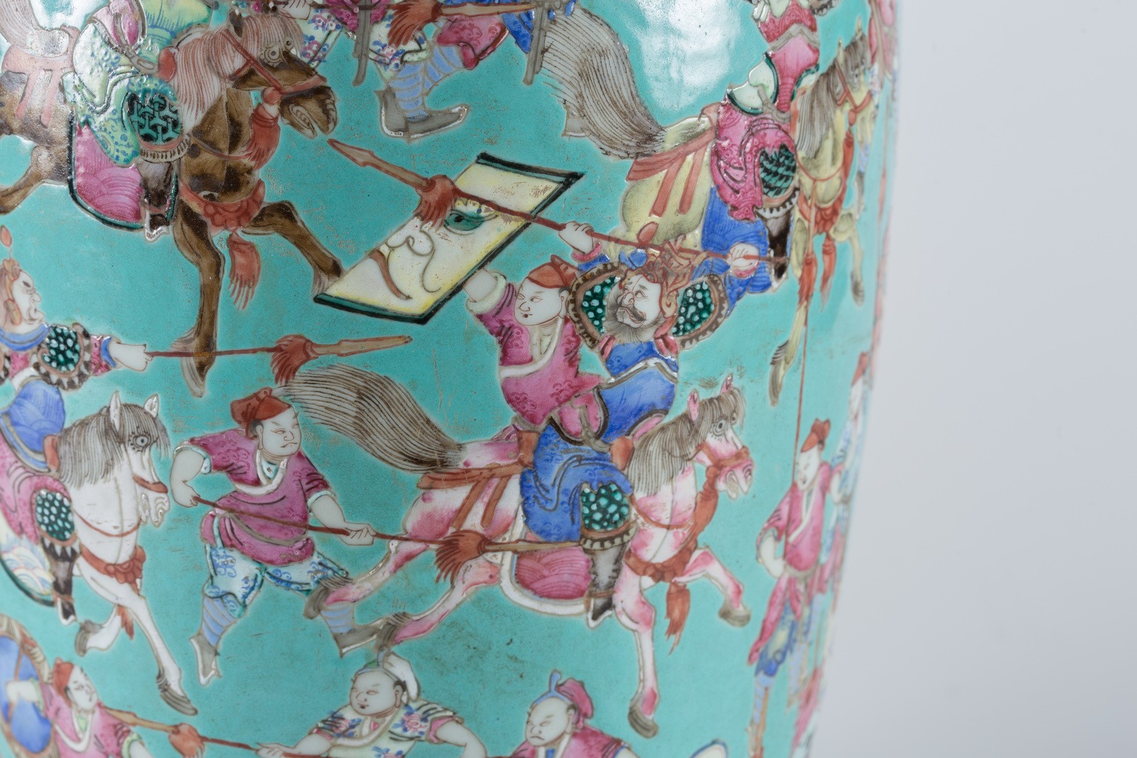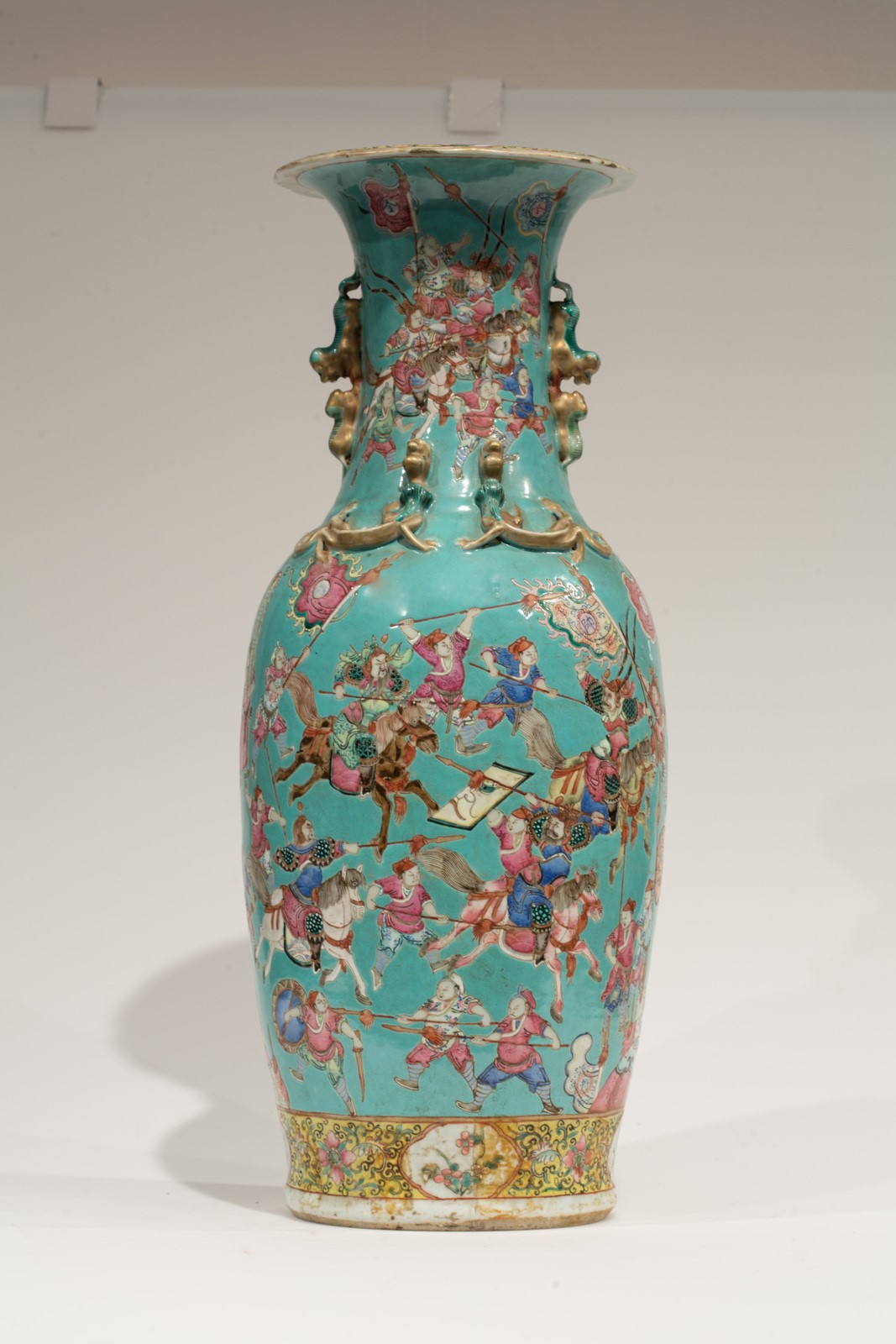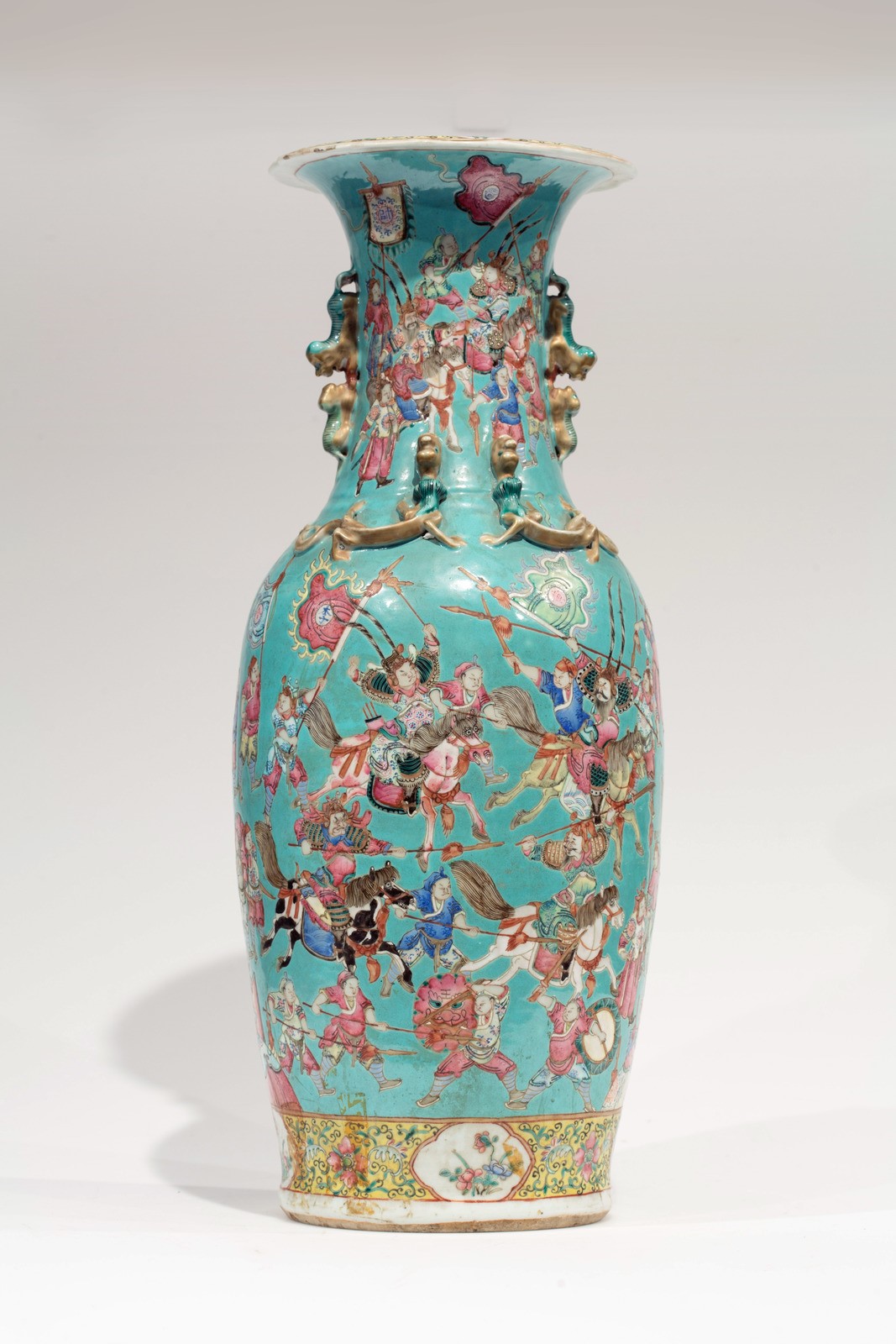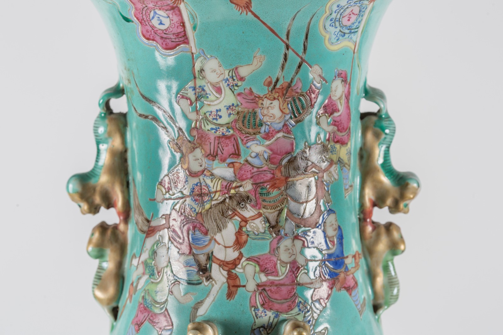 Arte Cinese A Canton famille rose porcelain vase decorated with knights