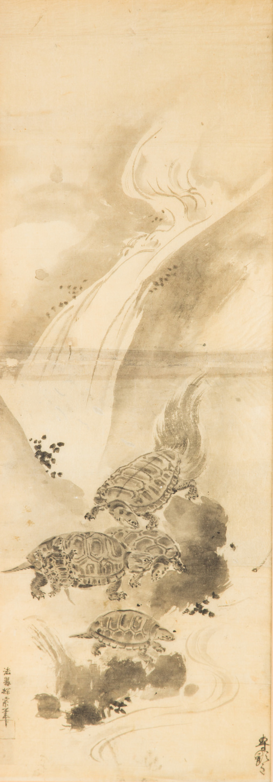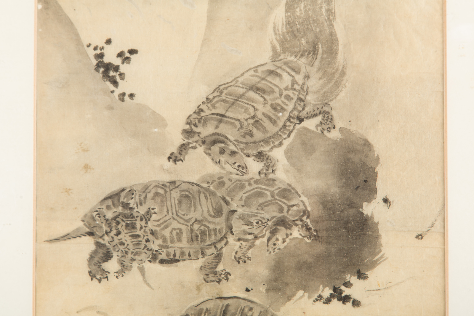 Arte Cinese Dipinto su carta raffigurante delle tartarughe Cina, dinastia...