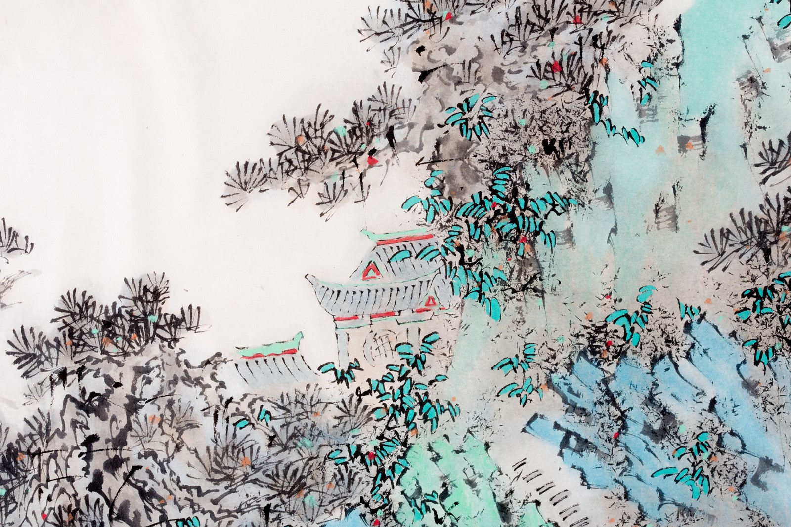 Arte Cinese A pair of ink and colour on paper shanshui paintings depicting landscapes and signed by Qing Shi